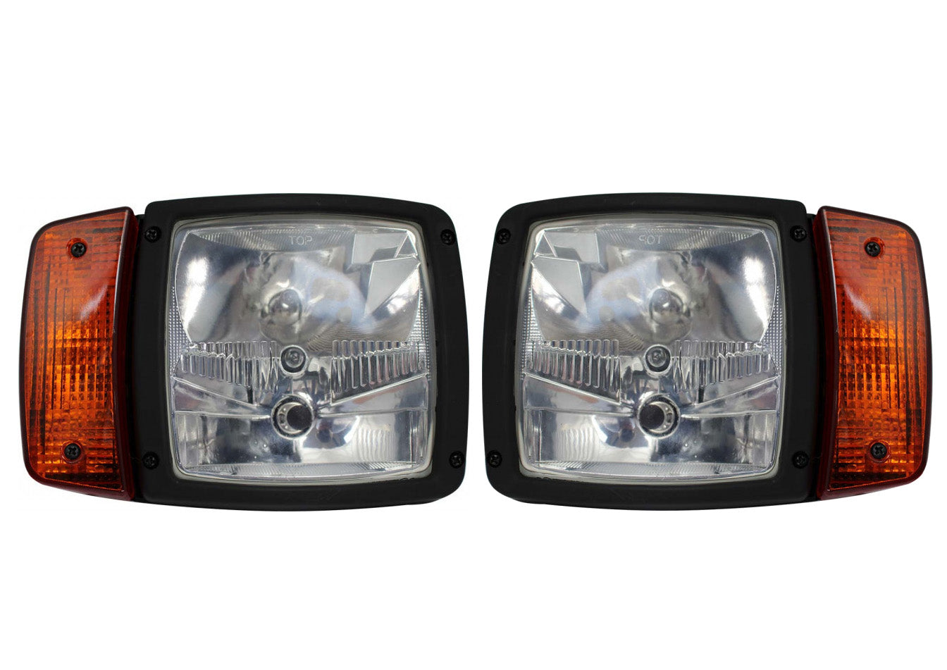 Комплект универсални външни фарове с мигачи Детайли: -Къси светлини. -Дълги светлини -Мигач -Страничен рефлектор -Размери: 212 х 150 х 125 мм; -Кабел: 15см Приложения: Подходящ за мотокар, трактор, багер, комбайн, снегорин и друга техника.