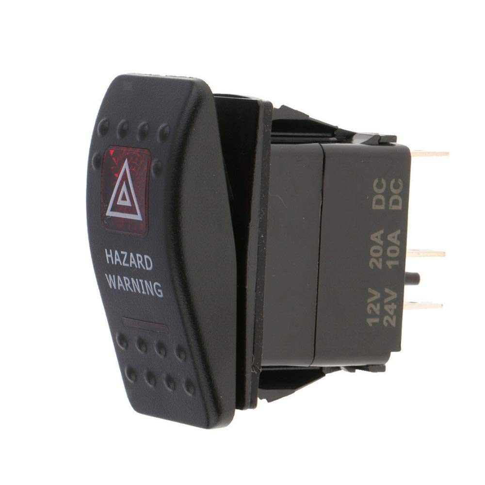 Бутон/Копче ON/OFF с Надпис HAZARD WARNING Цвят На Подсветката: Червен Размери: Виж снимките Работно напрежение: 12-24V (12V/20A, 24V/10A) Съвместим с всички 12-24 волтови акумулаторни инсталации PIN: 5 Пина Лесни монтаж и инсталация ( Виж снимките) Придава модерен и красив дизайн на интериора.