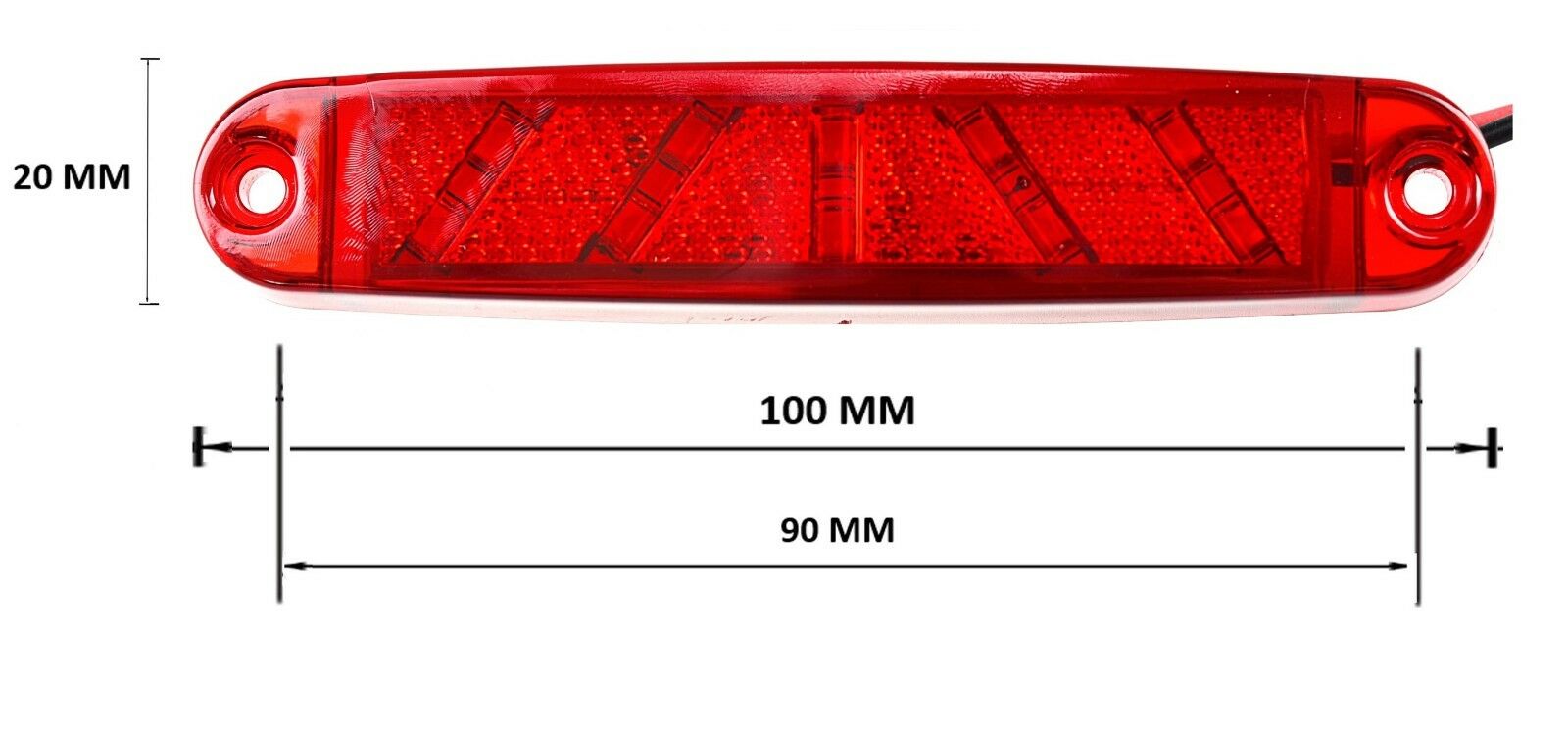 ВОДОУСТОЙЧИВ НИСКА КОНСУММАЦИЯ НА ЕНЕРГИЯ ЦВЯТ: ЧЕРВЕН Светодиоди: 10 ПРИЛОЖЕНИЕ: СТРАНИЧНО/ЗАДНО ДЪЛЖИНА: 100 ММ ШИРИНА: 20 мм ВИСОЧИНА: 10 ММ РАЗСТОЯНИЕ МЕЖДУ ОТВОРИТЕ : 90 ММ НАПРЕЖЕНИЕ: 12V 24V