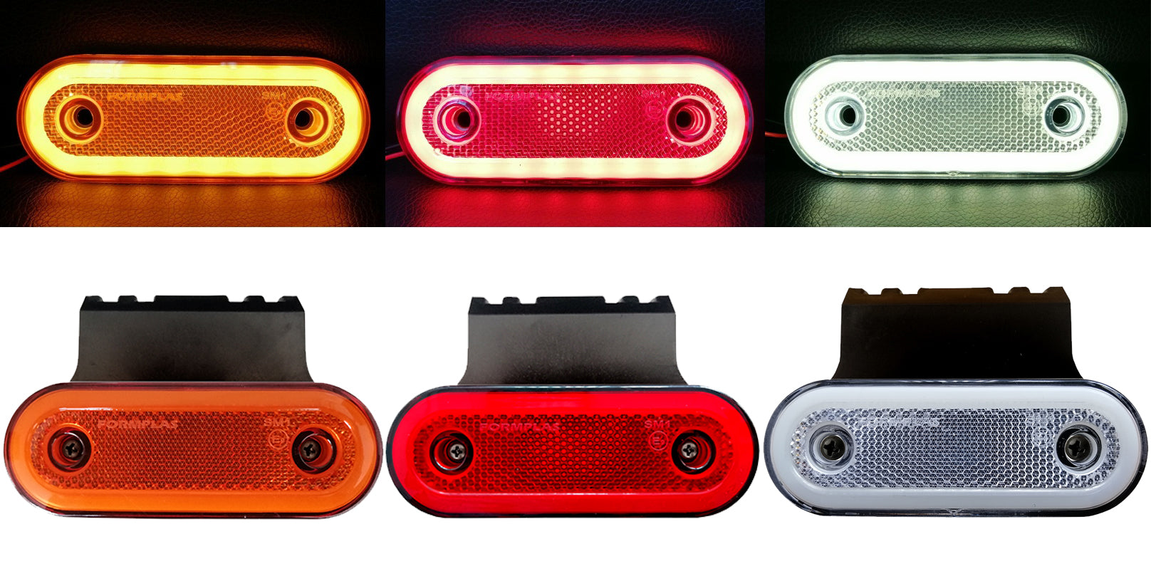 Универсален LED Светодиоден Габарит със стойка подходящ за камиони, бусове, каравани, ремаркета и полуремаркета, селскостопански машини, платформи за лодки и мотори, строителна техника и др. С ефект на неоново светене и вграден пасивен рефлектор светлоотразител. Подходящ както за 12V, така и за 24V Водоустойчив с висок клас на защита: IP 66/68 E-Mark евро сертификат - Е9 Три Вида Цвят на светлината - Жълт/Оранжев, Бял, Червен Размери: Дължина: 110мм Широчина: 45мм Дебелина: 15мм
