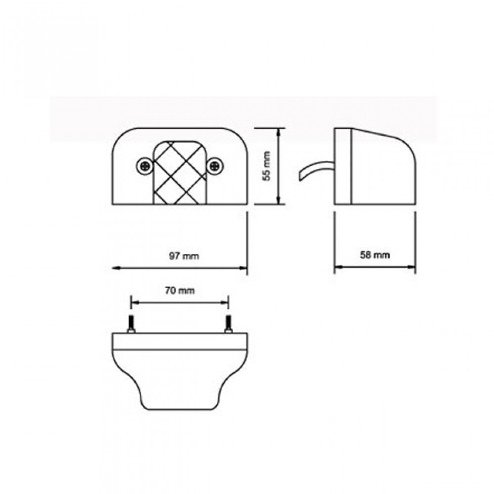 1 бр. SMD LED 12V- 24V осветление За регистрационна табела за всеки тип МПС Много по-ярко и енергоспестяващо. Уникален и практичен дизайн. Много по-ярки и енергоспестяващи светлини от стандартните LED Лесен монтаж и демонтаж Размери: 97мм (дължина) х 58мм (ширина) х 65мм (височина) Разстояние между болтовете за монтаж: 70мм Материал: ABS пластмаса, ударо и водоустойчива (IP67)