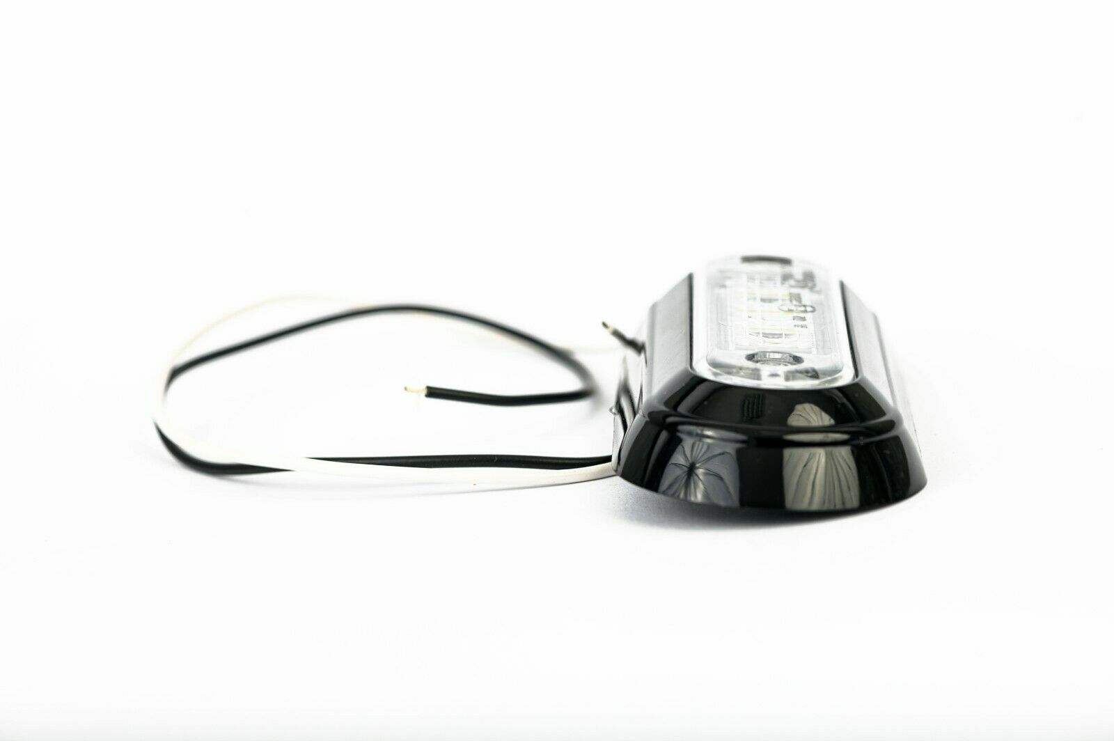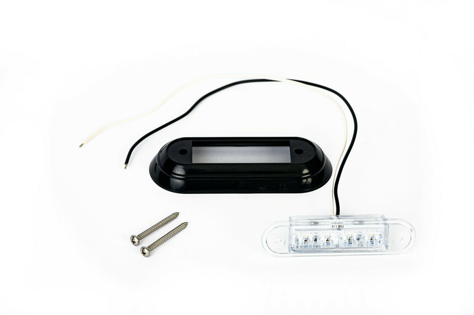 LED Диоден Вграден Страничен Габарит, Маркер, Токос Бял12-24V за камион, бус, ван, платформа, ремарке Е-марк Е9 Универсален монтаж Водоустойчив до IP67 Предварително окабелен с 300 мм кабел E9 Mark Напрежение: 12V (0.3W) 24V (0.6W) Цвят: Бял Размери без скоба *90 mm (дължина) x 22 mm (ширина) x 100 mm (дълбочина) *70 мм (между центъра на монтажния отвор) Размери със скоба *110 мм (дължина) x 45 мм (ширина) Нов