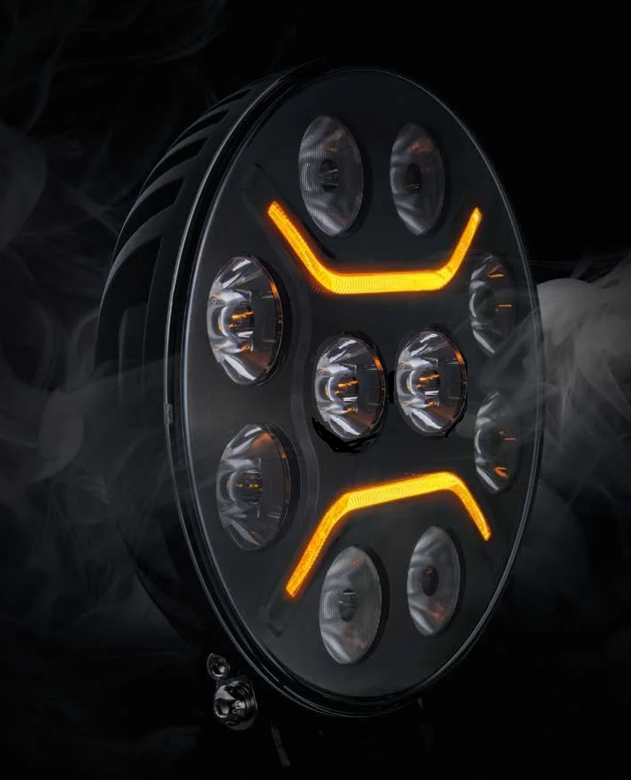 LED + DRL Диоден Халоген Фар Бял Оранжев Габарит Ø 230 мм 12V 24V за джип камион трактор багер земеделски машини и др.