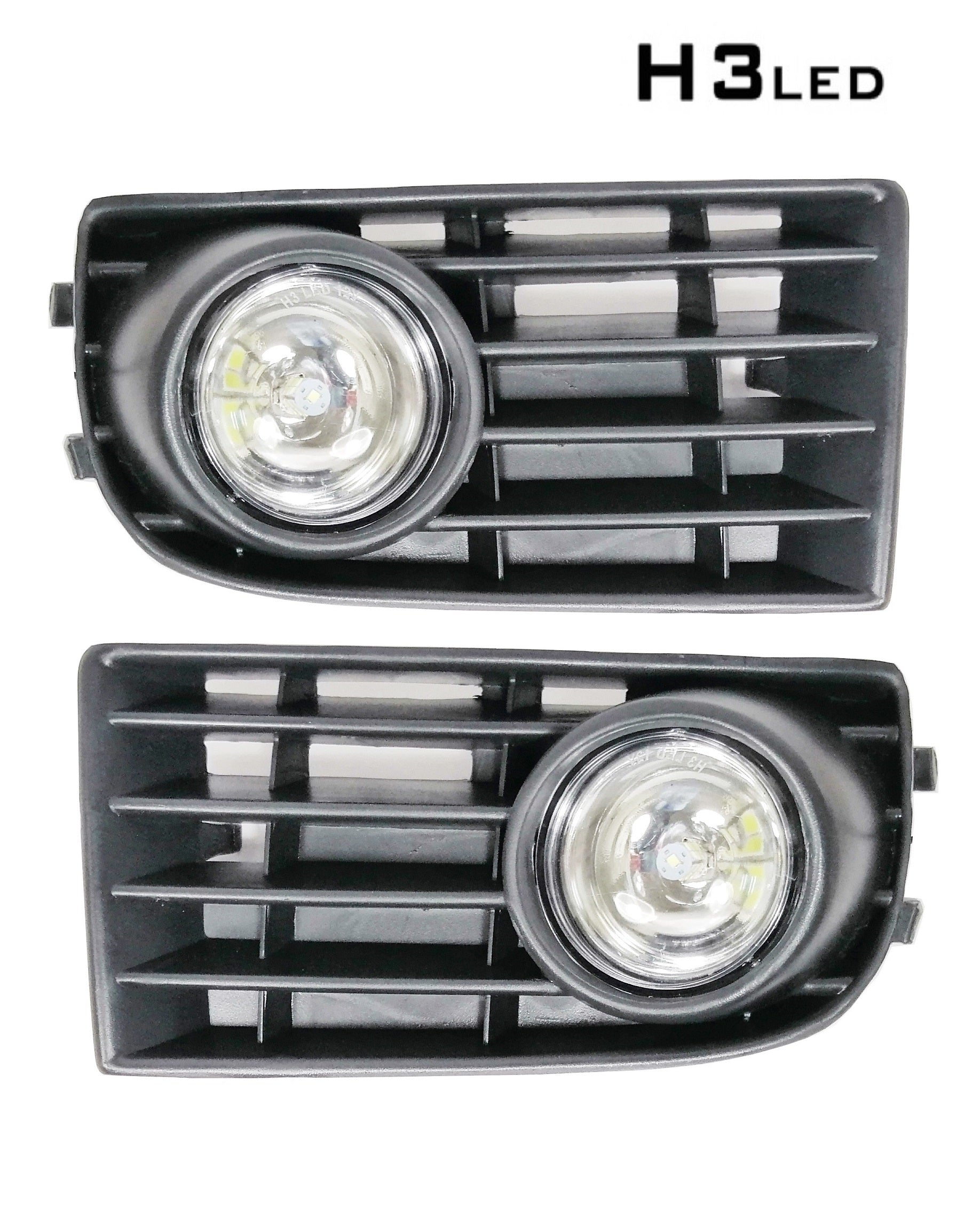 LED Халогени с решетки за VW Volkswagen Golf 5 2003 - 2009 Качествено изработени ЛЕД халогени със решетки, предназначени за директно заместване на липсващи или счупени. Комплект от: 1. Леви + Десни Решетки 2. Халогени с ЛЕД крушки - 8x 1w 3. Бутон за Вкл/Изкл