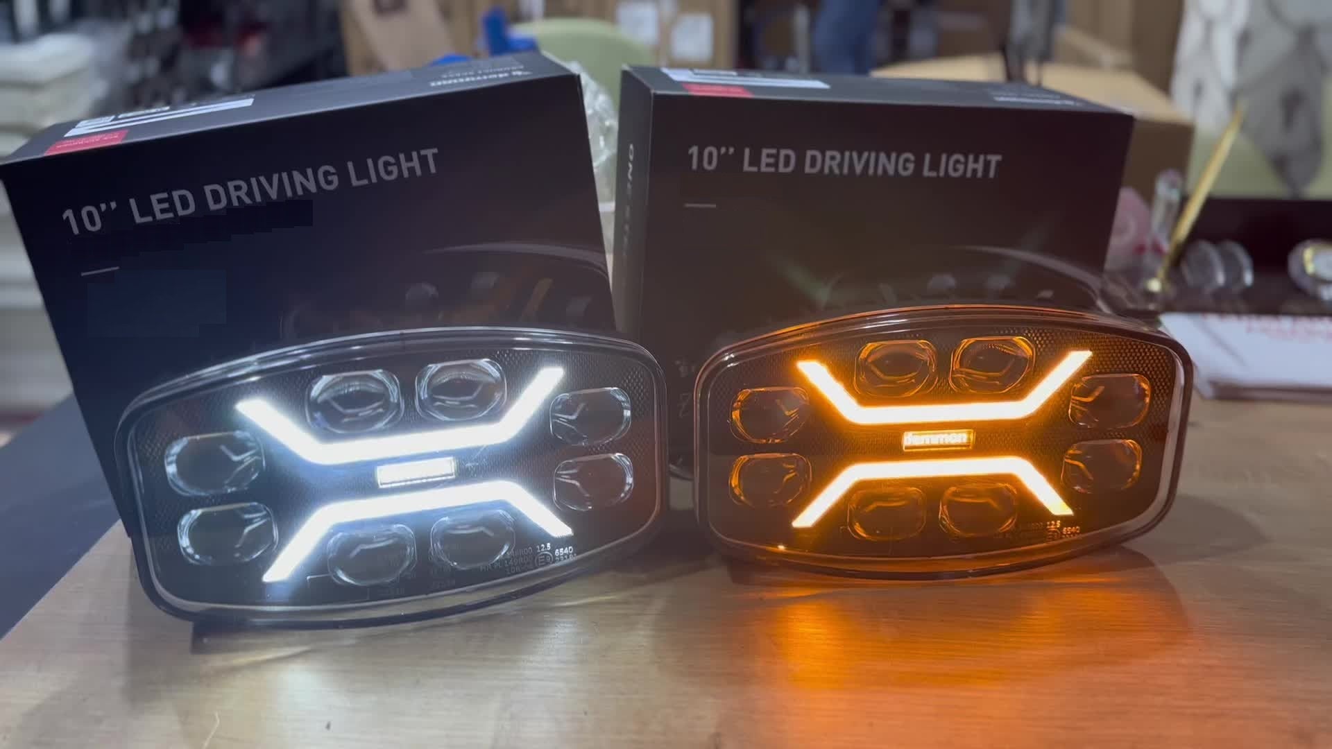 LED мощен диоден фар халоген лампа 12V - 24V 48W бяло-жълто за АТВ джип камион трактор земеделски и селскостопански машини и др. 245 x 139.4 x 90 mm E-mark E9