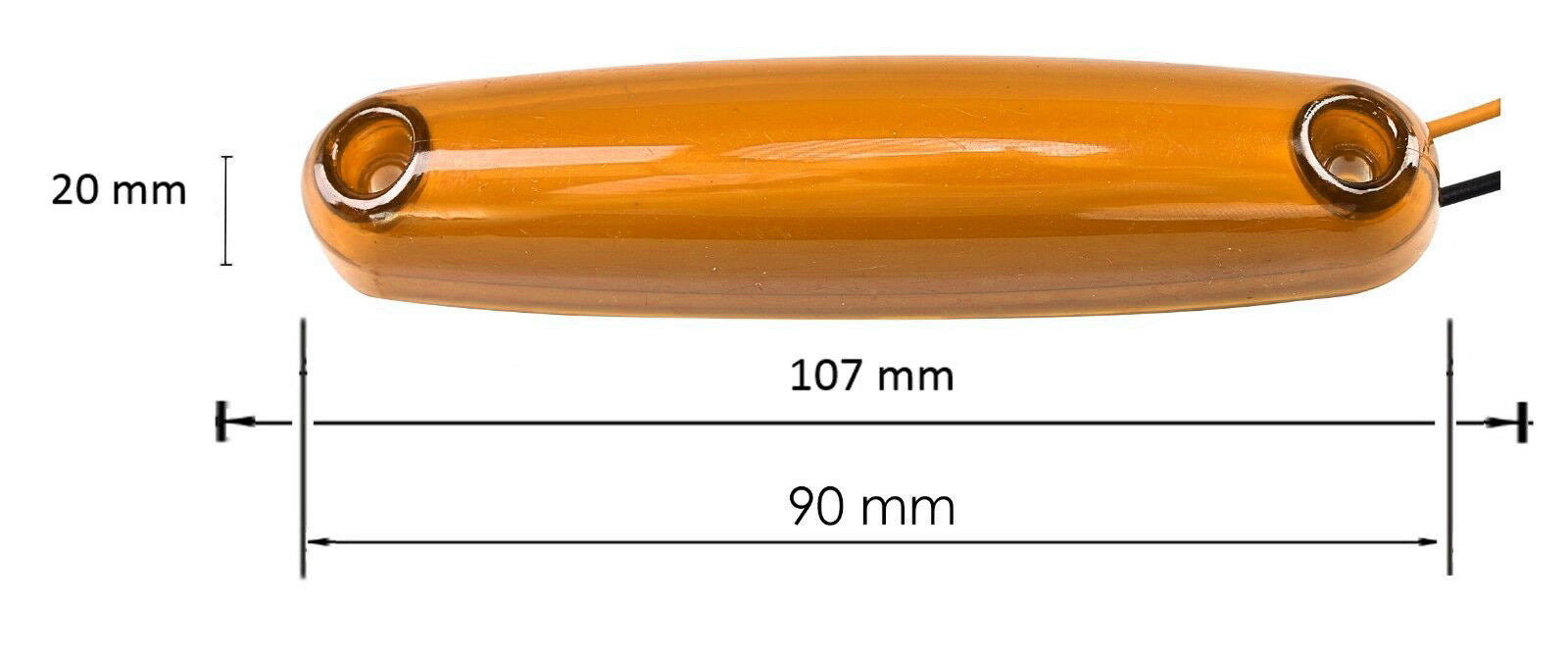 LED Светодиоден Габарит Неон Ефект Маркер Токос Жълт 12V-24V, 107 мм