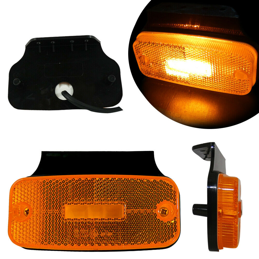 Универсален LED Светодиоден Габарит подходящ за камиони, бусове, каравани, ремаркета и полуремаркета, селскостопански машини, платформи за лодки и мотори, строителна техника и др. Включена стойка в комплекта Възможност за вертикален и хоризонтален монтаж Подходящ както за 12V, така и за 24V Ниска консумация на енергия- 3 LED светлини във всяка лампа Цвят: оранжево / кехлибарено Дължина: 110 мм Дълбочина: 20 мм Височина със скоба: 70 мм Разстояние между фиксиращите отвори на скобите: 90 мм