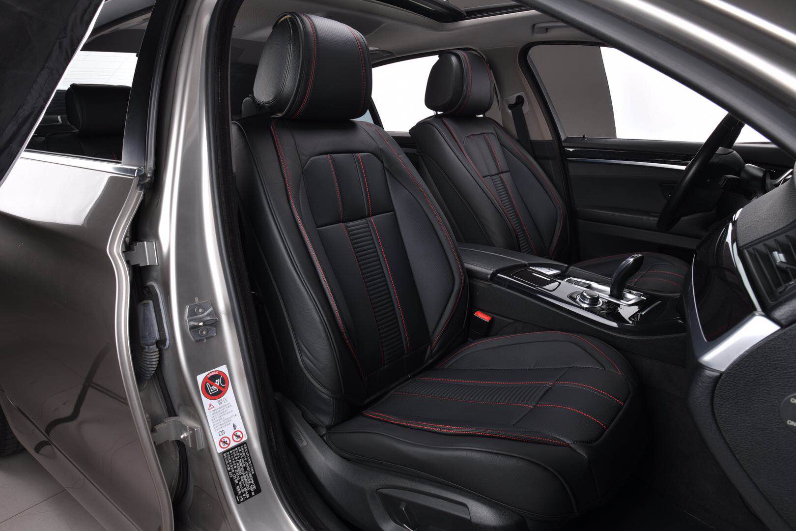 Лукс Универсална Кожена Тапицерия / Калъфи за предни седалки Еко Кожа Черна с Червен Шев
