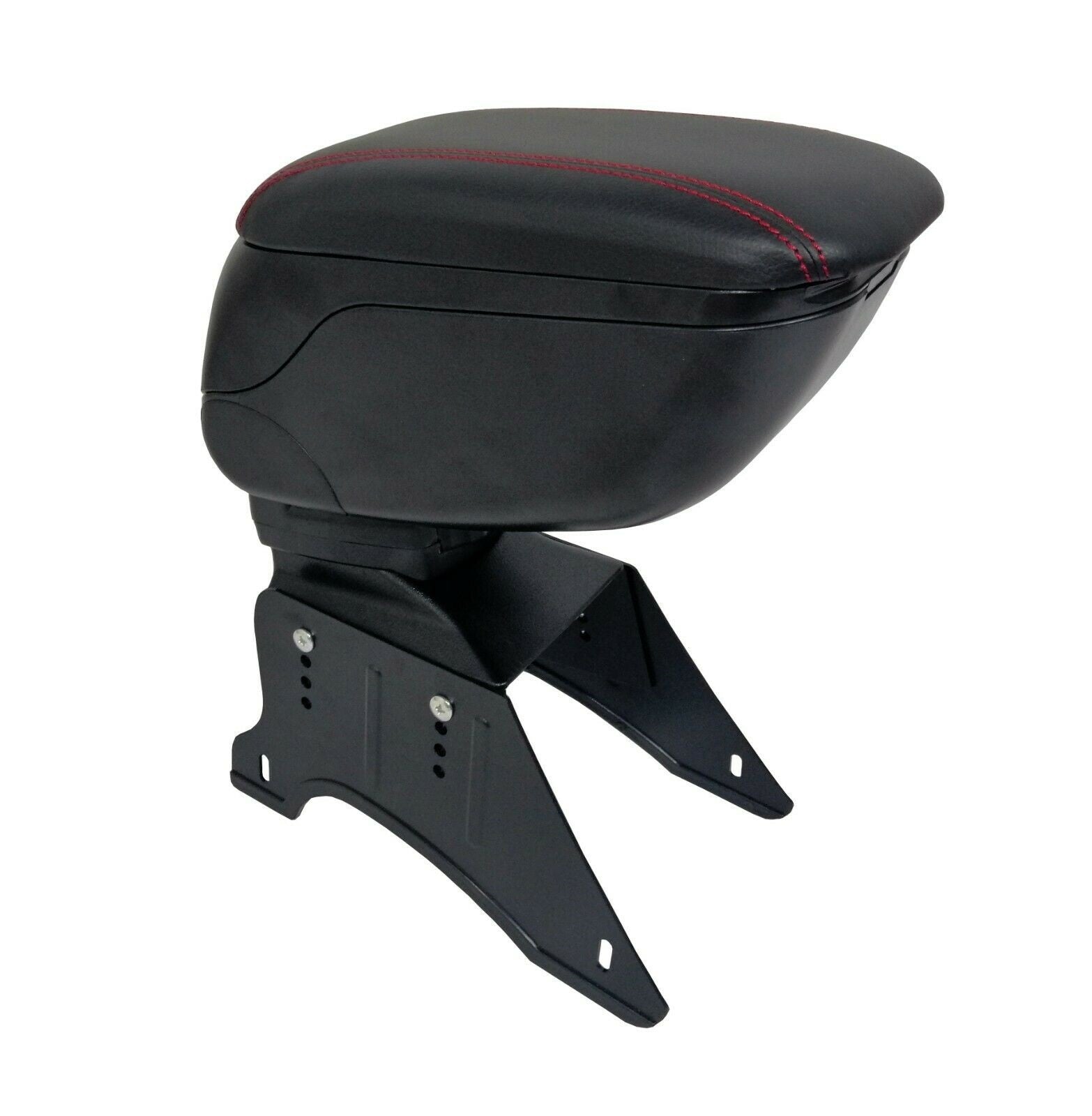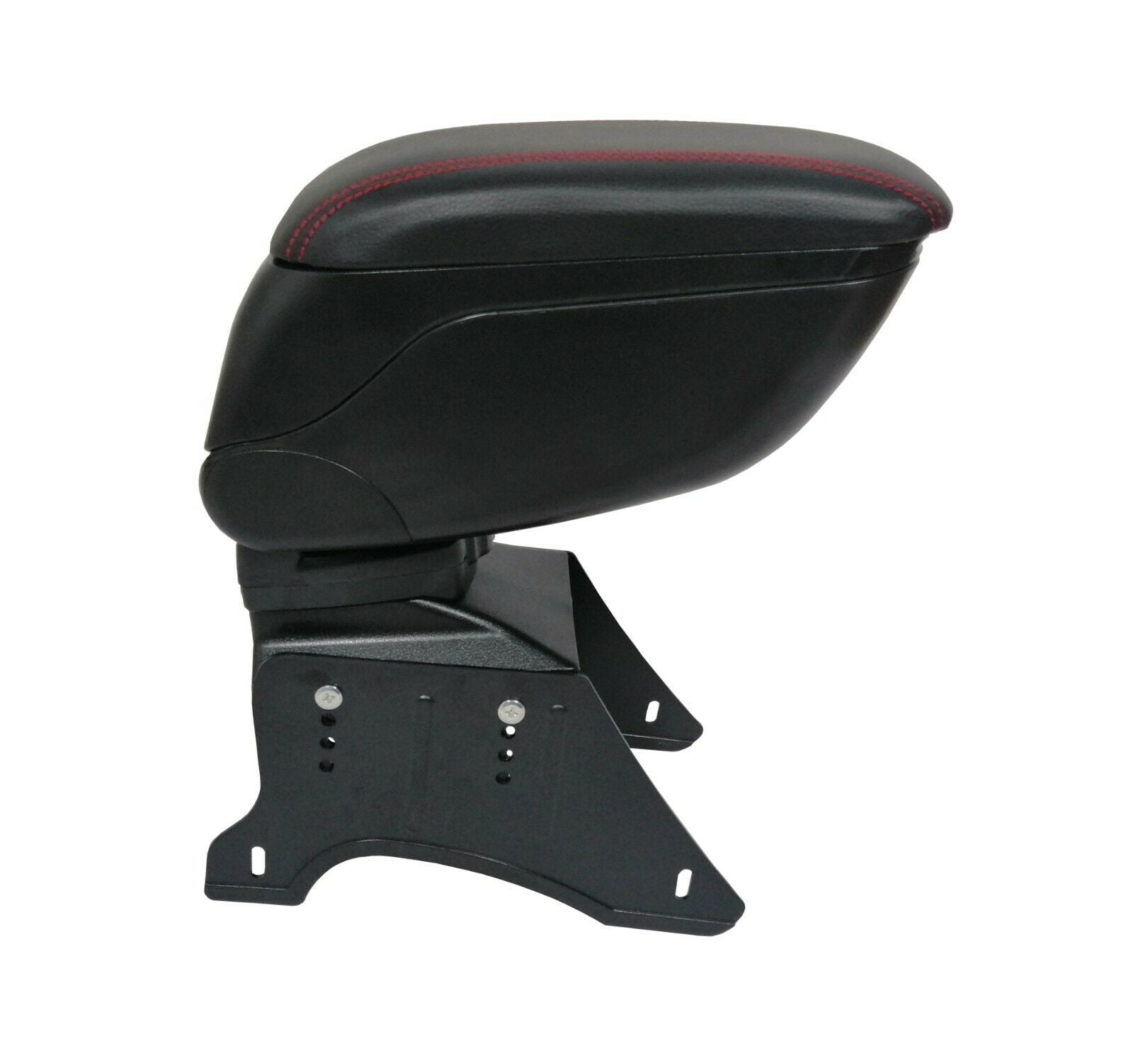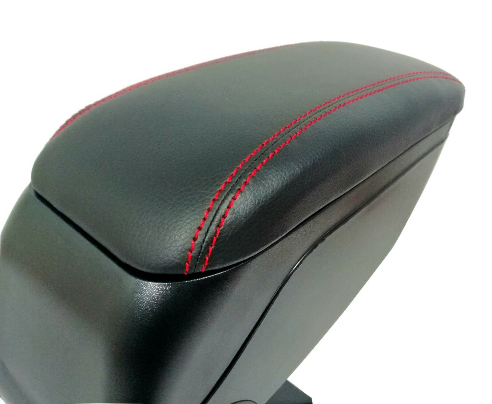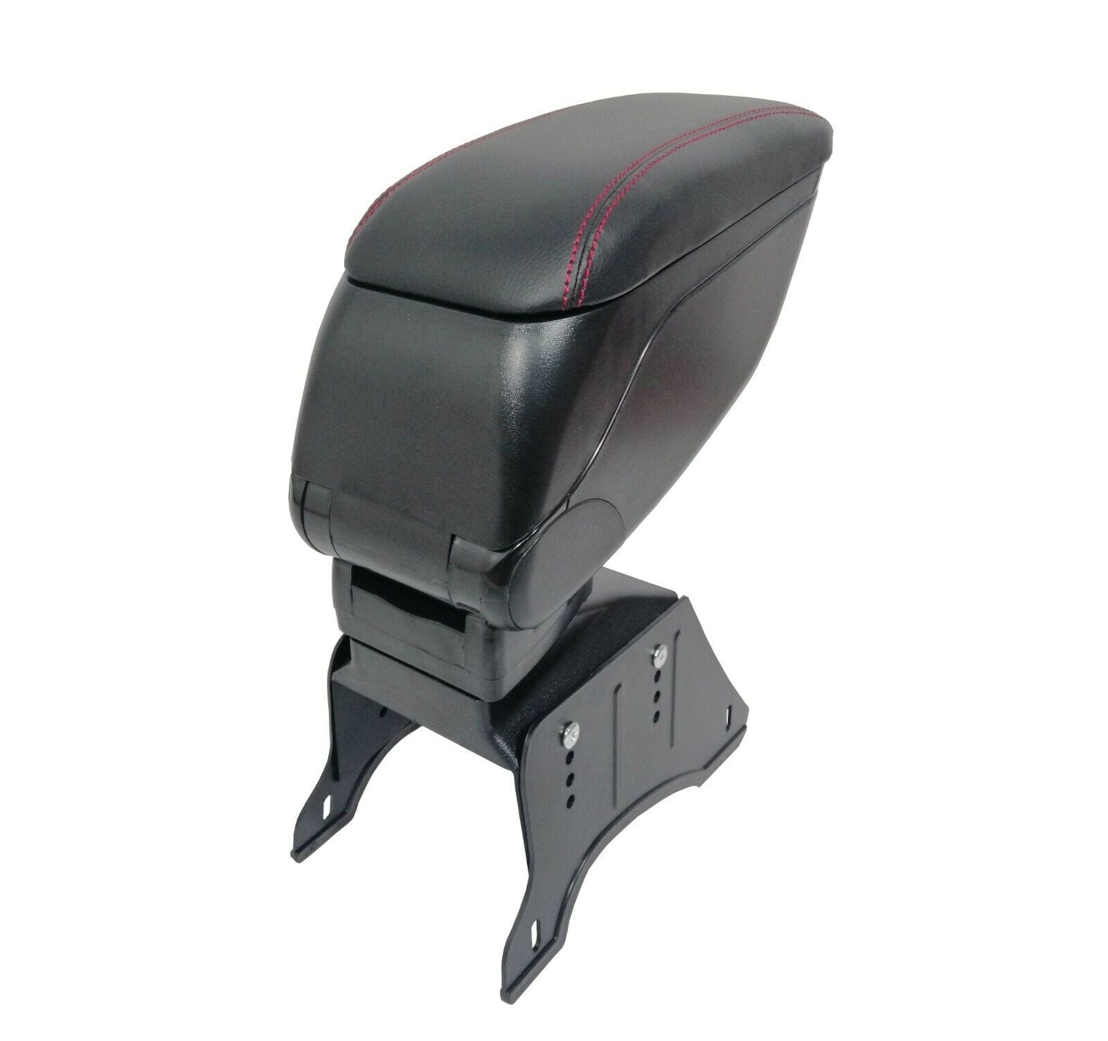 Луксозен Черен Подлакътник, Черна Кожа с Червен Шев, Универсален с Планки и Слайдер Подлакътник за отпочиване ръката на шофьора с кутия за дребни вещи. Изключително удобен и функционален. Плъзгаща се горна част за постигане на по-голямо удобство. Пълно сгъване между седалките когато не се използва. Изработен от качествена еко кожа. Лесен монтаж. Ширина на основата 12см, регулируема височина, максимална височина 35см, размер на горния подлакътник-27см х 13см, Плъзгащ се ТОП 5.5см Пет регулируеми настройки на височината на опорната стойка - най-ниската височина 25см с 4 допълнителни настройки на височината до максимум 31см