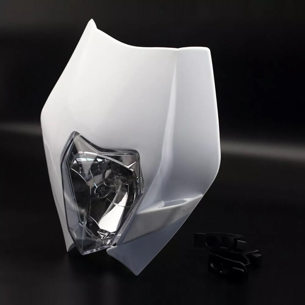 Изработен с пластмасова маска и прозрачен стъклен капак на фара, този комплект предлага стил, устойчивост и функционалност. Идеален за офроуд и улични мотоциклети.