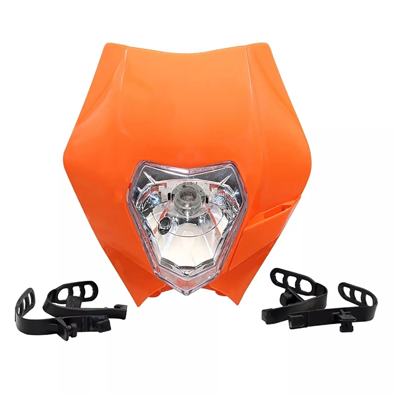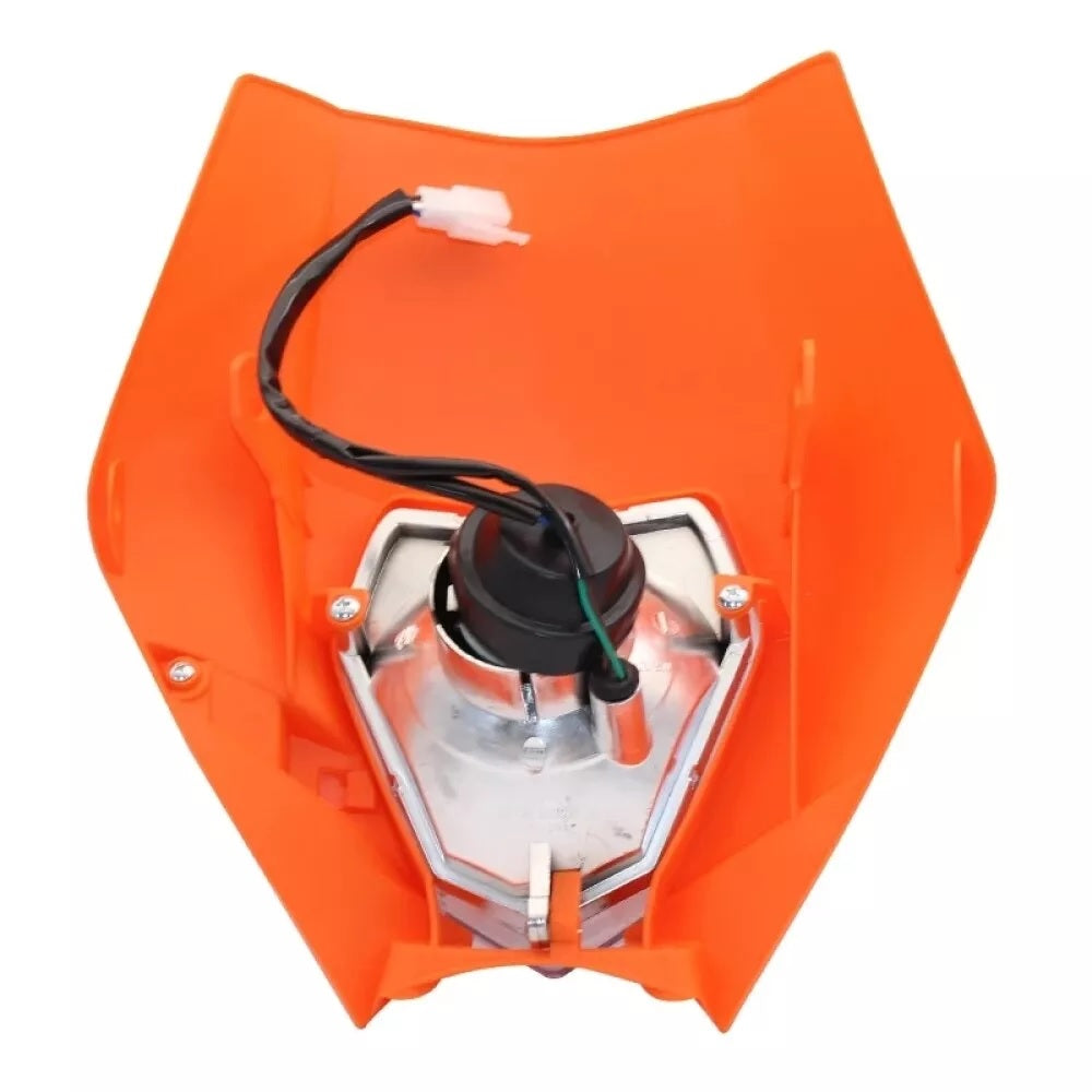 Изработен с пластмасова маска и прозрачен стъклен капак на фара, този комплект предлага стил, устойчивост и функционалност. Идеален за офроуд и улични мотоциклети.