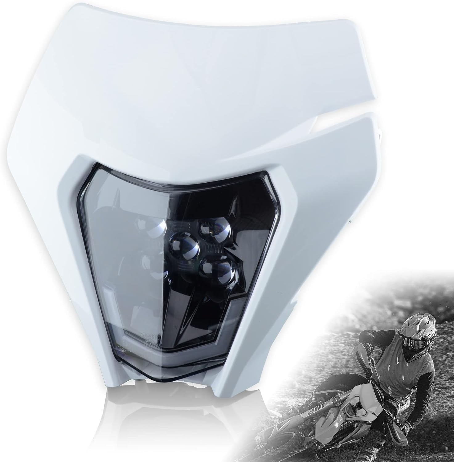 Маска с LED Фар за мотор, мотоциклет Бяла с къси и дълги светлини - Универсален модел за ENDURO / Trail / Streetfighter