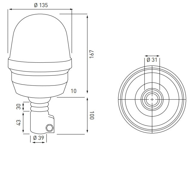 Въртящ се Маяк Буркан Аварийна Сигнална Лампа С Крушка Оранжева Жълта, 12V Описание: В комплект с крушка H1/12v Може да се използва на 12v превозни средства Връзка за DIN монтаж Размери: Височина: 267 мм Диаметър: 135 мм Много възможни приложения, включително тежкотоварни автомобили, камиони, автобуси, микробуси, трактори, селскостопански мащини и др.