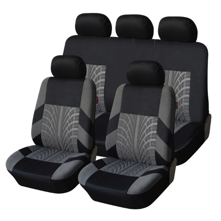 Нова универсална текстилна авто тапицерия, калъфи за автомобилни седалки, пълен комплект, 9 части в сиво-черно