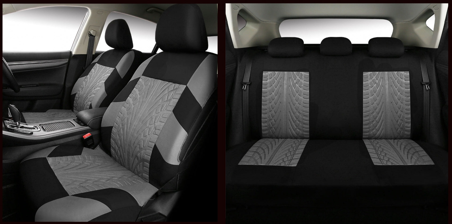 Здравейте! Нуждаете ли се от повече информация за Нова универсална текстилна авто тапицерия, калъфи за автомобилни седалки, пълен комплект, 9 части в сиво-черно?