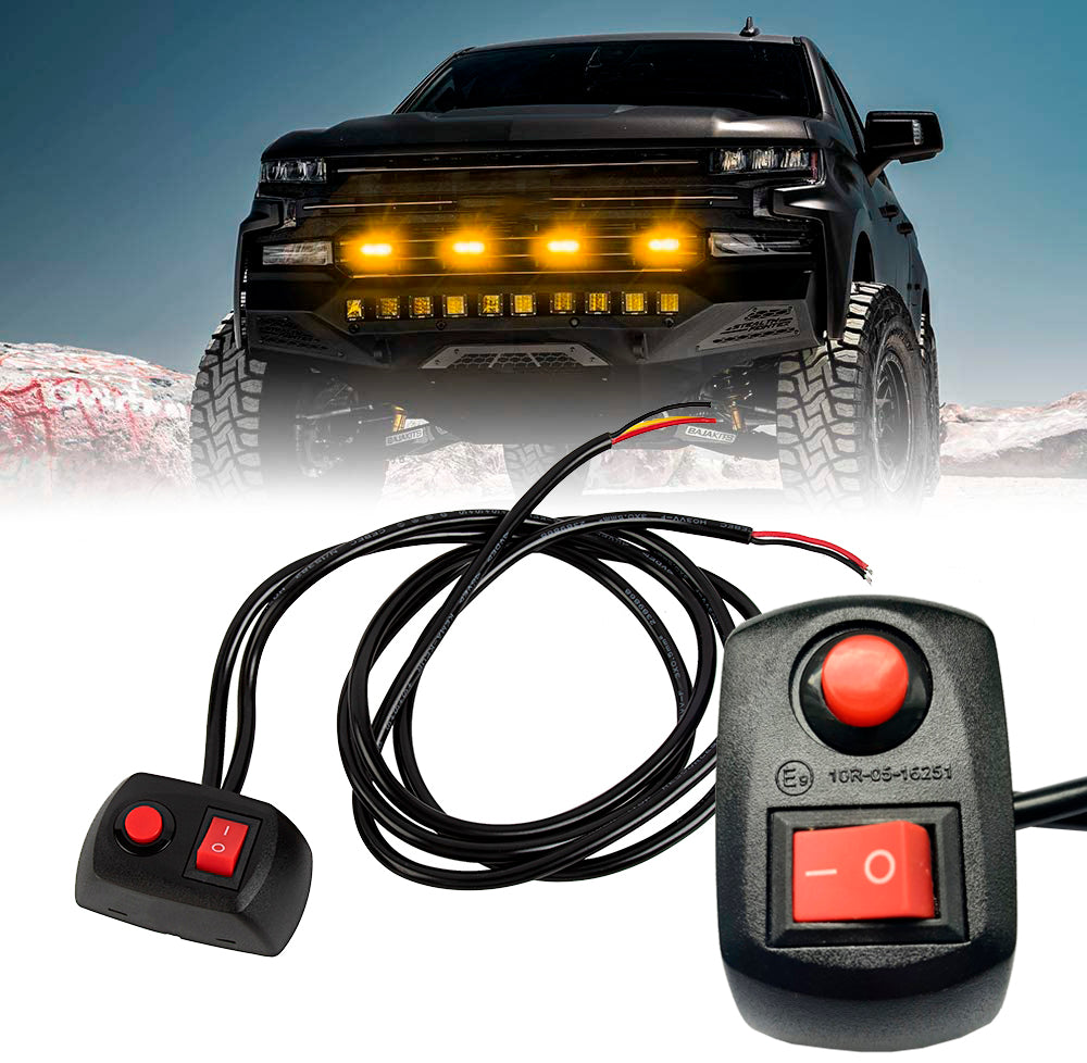 Окабеляване с Бутон ON/OFF и Контролер За Смяна На Режими За Флаш, Блиц , Аварийни , Мигащи Светлини 3.2 Метра Дължина на Кабела Към Светлините 90см Дължина На Захранващия Кабел 12V DC MAX 10A Бутон ON/OFF Бутон За Смяна На Режими ( Когато моделът на свързаните светлини го позволява) Размери 6,5cm Х 3.7cm Х 2.5cm Разстояние между монтажните отвори - 5cm