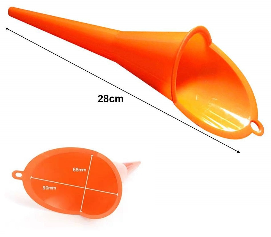 Оранжева пластмасова фуния за бензин масло вода и др. Размери: Дължина: 28 см Ширина на отвора: 90 мм х 68 мм