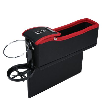Органайзер с монетник и поставка за чаши за кола между седалките - черна с червени шевове