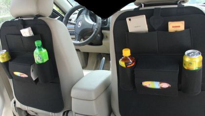 Универсален органайзер за кола, за 2 бутилки, поставка за телефон и джобове, за седалка на автомобила.