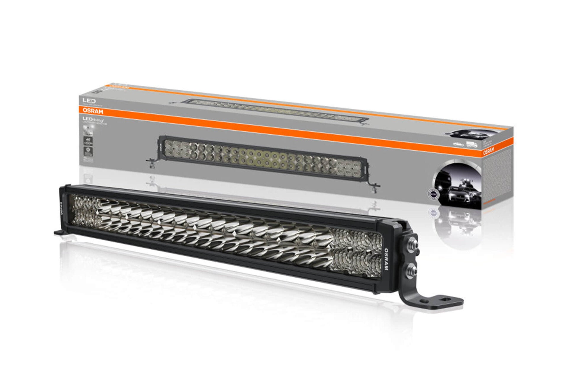 LED бар OSRAM on-road lightbar VX500-CB осигурява впечатляваща светлина с обхват до 238 м. и хомогенна осветеност до 4100 lm., благодарение на 48 високоефективни светодиода. Светлините OSRAM LEDriving® са съвместими с ECE изискванията (разрешени за използване на обществени пътища) и предлагат премиум стил и качества.