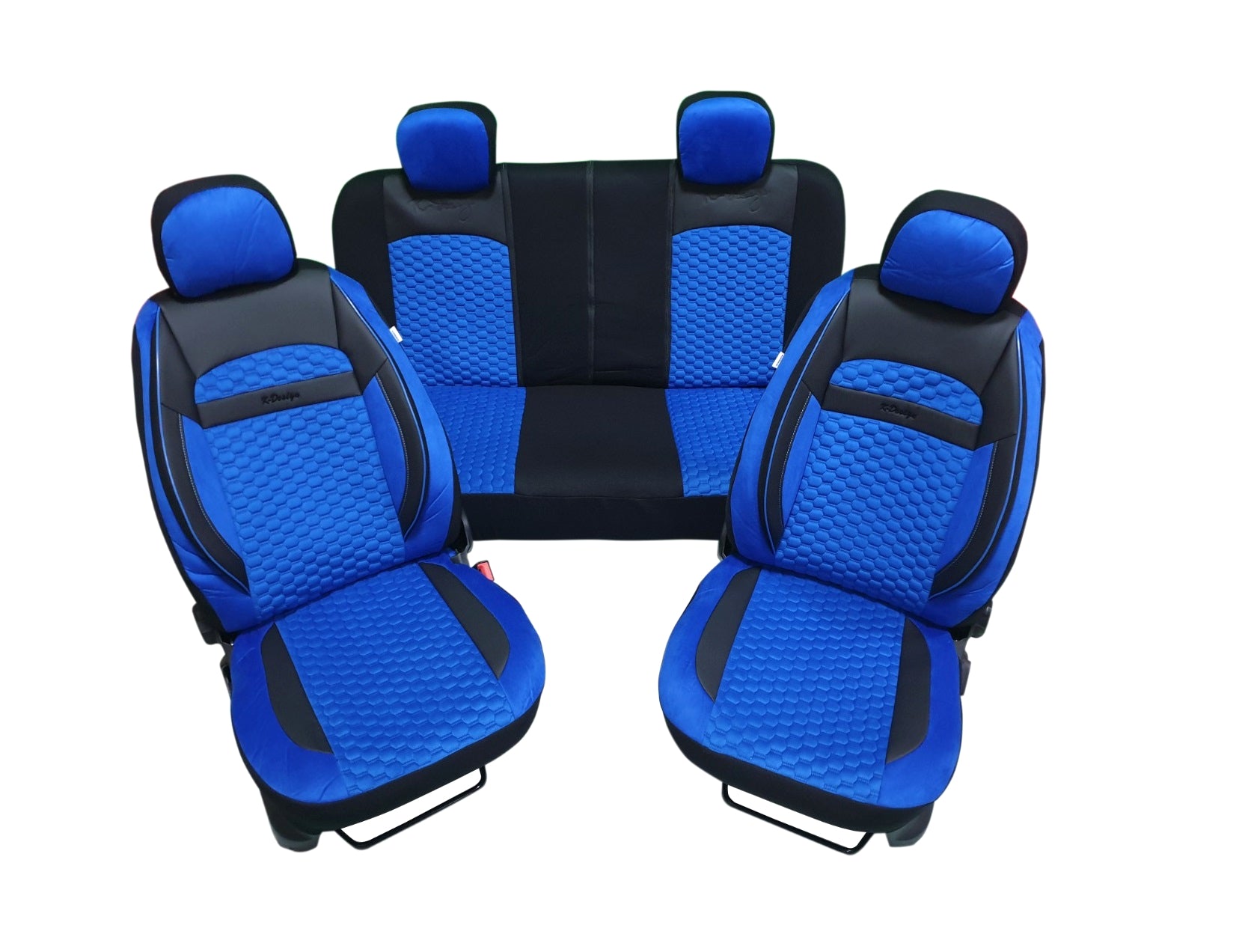 Пълен комплект DELUXE тапицерия/калъфи от еко кожа и текстил - / синьо и черно / - Пълен комплект: Шофьорска седалка, пасажерска седалка и задна седалка. Комплектът включва: 1 x калъф за шофьорската седалка 1 x калъф за пасажерска седалка 1 х калъф за задна седалка 4 x калъфи за облегалки за глава * подходящи за автомобили с ляв и десен волан * Бързо и лесно монтиране - просто поставете върху оригиналните седалки и изпънете (с ластици отдолу, така, че да се изпъват сегнато по седалките) * Подходящи са за автомобили с въздушни възглавници и могат да се ползват с подлакътник. * Лесно почистване - просто забършете. * Ушити от качествен текстил и еко кожа. - Тези калъфи са предназначени да предпазят вашата оригинална тапицерия от замърсяване и износване. - Дори редовно почистване не може да спре ежедневното износване. - Защитете оригиналната тапицерия на автомобила си. За въпроси може да ни потърсите на посочения телефон в работно време.