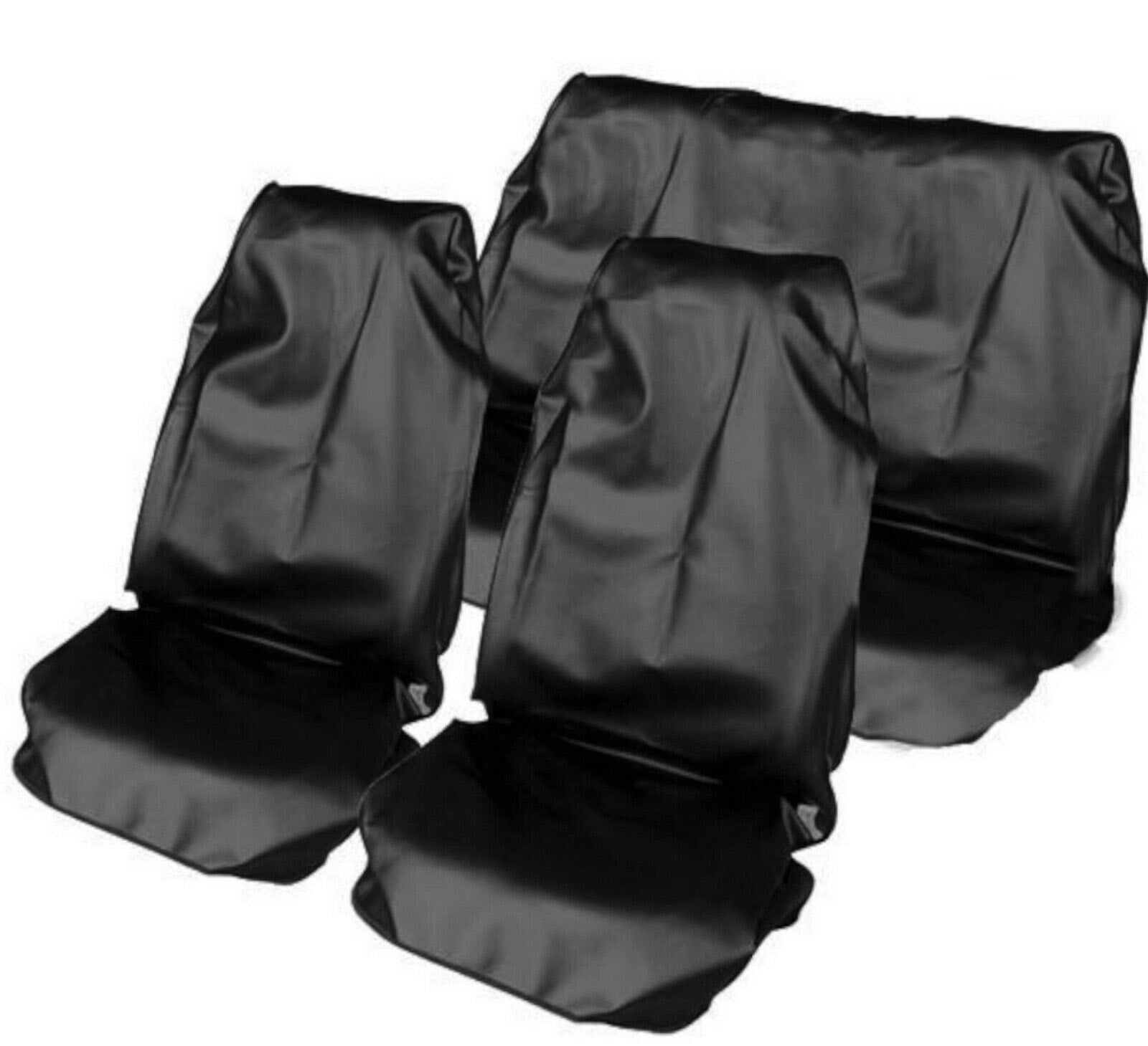Пълен комплект непромокаеми устойчиви протектори за седалки на автомобили / бусове плътен, здрав и лесен за почистване материал / черни / * Бързо и лесно монтиране - просто поставете върху оригиналните седалки (с ластици отдолу, така, че да се изпъват сегнато по седалките) * Лесно почистване - просто забършете -Тези калъфи са предназначени да предпазят вашата оригинална тапицерия от замърсяване и износване. Особено подходящи за работни или офроуд автомобили, където е значително по-голямо замърсяването на седалките. Инвестирайте в тези висококачествени калъфи, особено ако използвате автомобила си за работа, лов и офроуд. Отлична защита срещу кал, мръсотия и вода за автомобил, микробус или SUV За въпроси може да ни потърсите на посочения телефон в работно време.