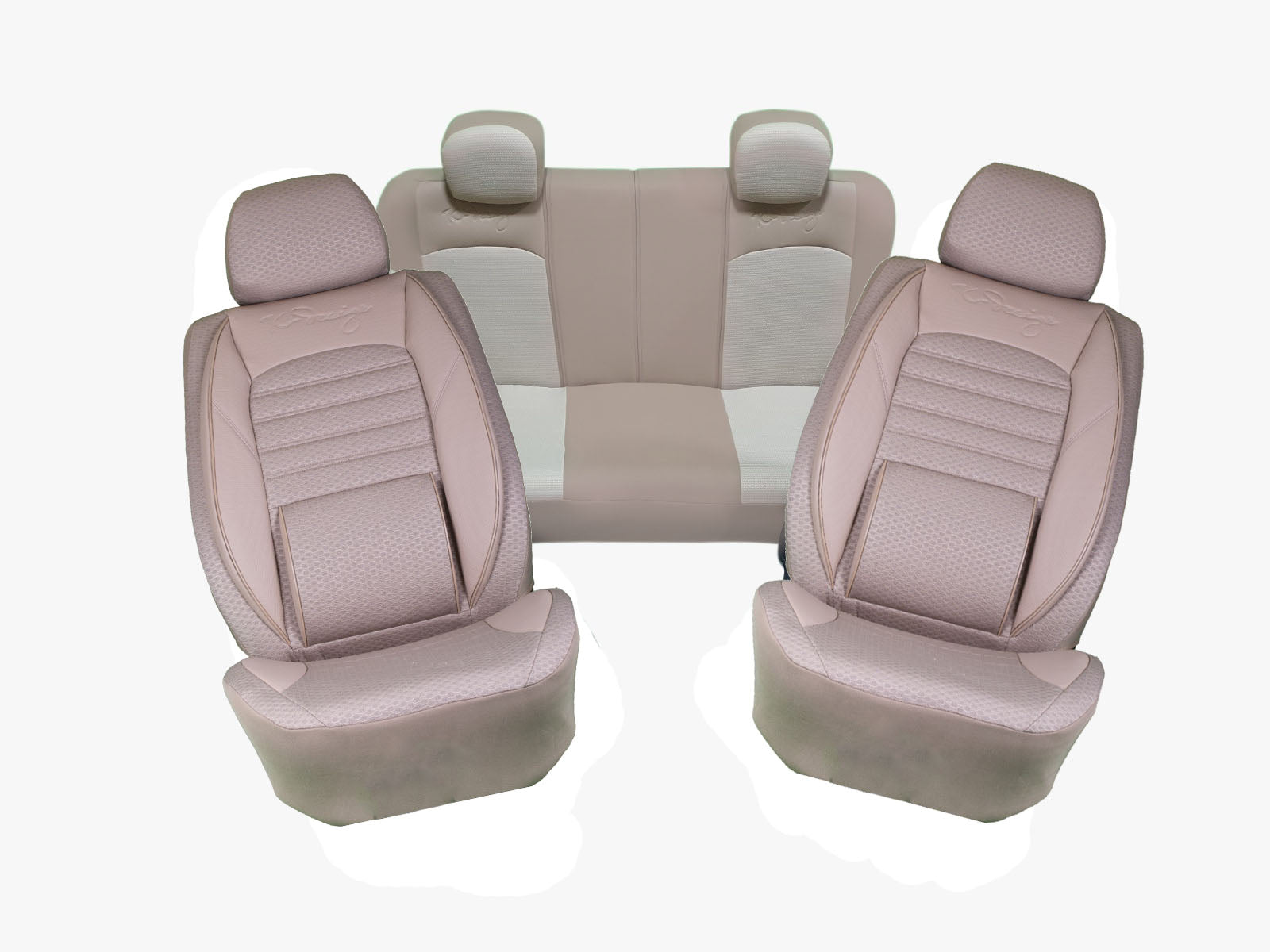 Пълен комплект тапицерия/калъфи от еко кожа и текстил BALLANCE - / кремаво със бежово / - Пълен комплект: Шофьорска седалка, пасажерска седалка и задна седалка. Комплектът включва: 1 x калъф за шофьорската седалка 1 x калъф за пасажерска седалка 1 х калъф за задна седалка 4 x калъфи за облегалки за глава - тези калъфи имат възглавничка в областта на кръста за лумбална опора * подходящи за автомобили с ляв и десен волан * Бързо и лесно монтиране - просто поставете върху оригиналните седалки и изпънете (с ластици отдолу, така, че да се изпъват сегнато по седалките) * Подходящи са за автомобили с въздушни възглавници и могат да се ползват с подлакътник. * Лесно почистване - просто забършете. * Ушити от качествен текстил и еко кожа. - Тези калъфи са предназначени да предпазят вашата оригинална тапицерия от замърсяване и износване. - Дори редовно почистване не може да спре ежедневното износване. - Защитете оригиналната тапицерия на автомобила си. За въпроси може да ни потърсите на посочения телефон в работно време.