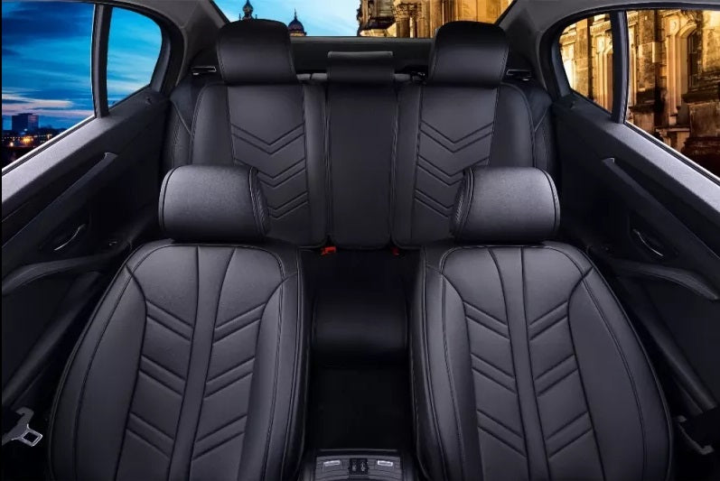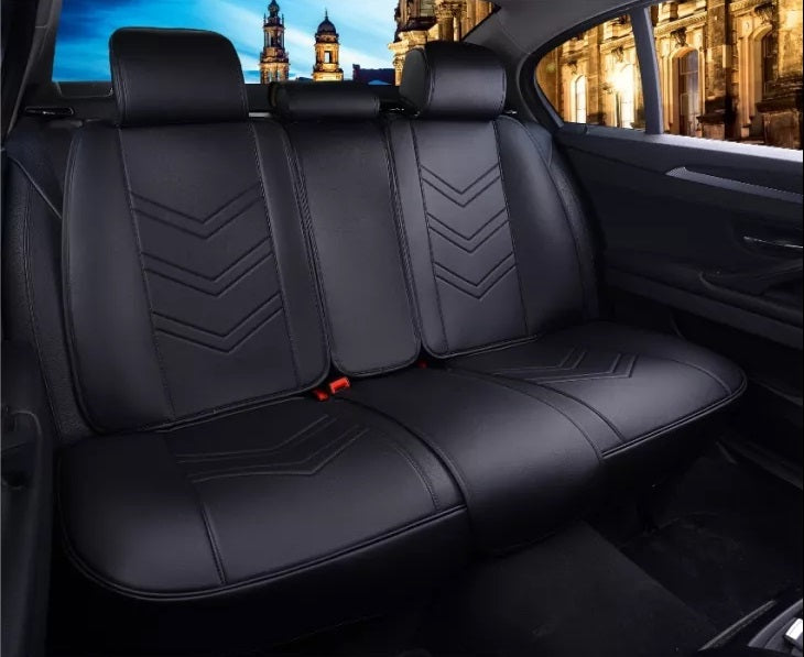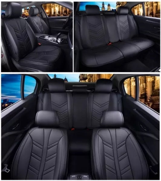 Висококачествена пълен комплект черна тапицерия от изкуствена кожа Изработени от висококачествена PU изкуствена кожа и мека пяна, осигуряват удобно чувство за сядане. Ръчно шити. Универсален дизайн, подходящ за всички автомобили. Дизайн, съвместим с airbag - въздушни възглавници. Устойчивост на износване, добър водоустойчив ефект и силна огнезащитна способност. Лесна инсталация. Цялостен дизайн, покрива предната и задната част на седалката. Пакет, включващ: 5 части