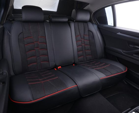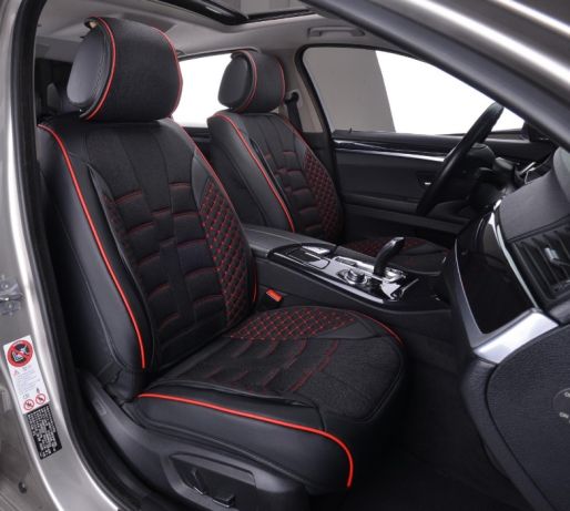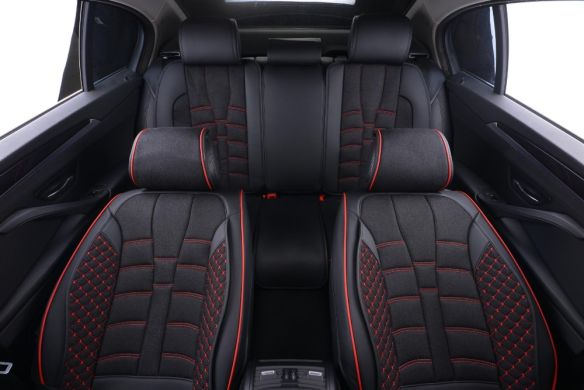 Пълен Комплект Универсална Тапицерия - Калъфи За Автомобилни Седалки, Лукс Еко Кожа ,Черно с червен шев