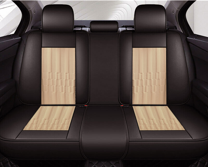 Нова Луксозна тапицерия - пълен комплект Изработени от висококачествена PU изкуствена кожа с мека пяна и текстил, осигуряват удобно чувство за сядане. Ръчно шитa. Универсален дизайн, подходящ за всички автомобили. Дизайн, съвместим с airbag - въздушни възглавници. Устойчивост на износване, добър водоустойчив ефект и силна огнезащитна способност. Лесна инсталация. Цялостен дизайн, покрива предната и задната част на седалката. Пакет, включващ: 2 предни и 3 задни калъфа за седалки
