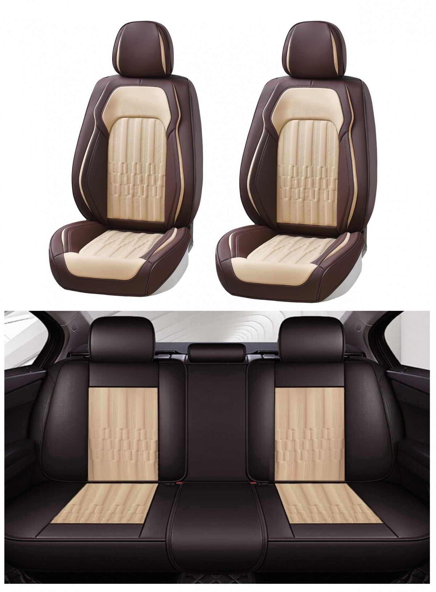 Пълен Комплект Универсална Тапицерия, Калъфи За Автомобилни Седалки Лукс Еко Кожа и Висококачествен Текстил в Бежово и Кафяво (цвят Кафе) с възглавнички