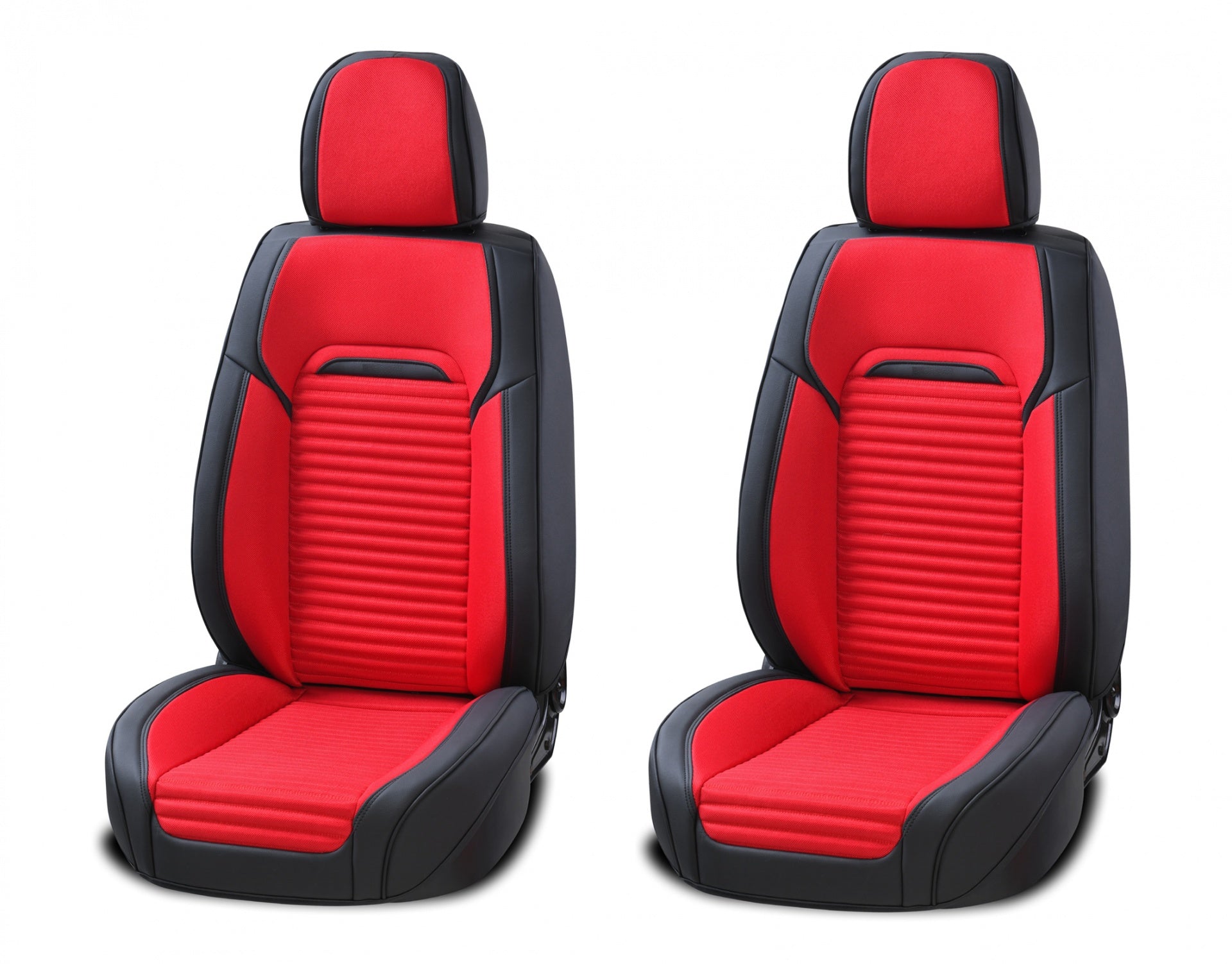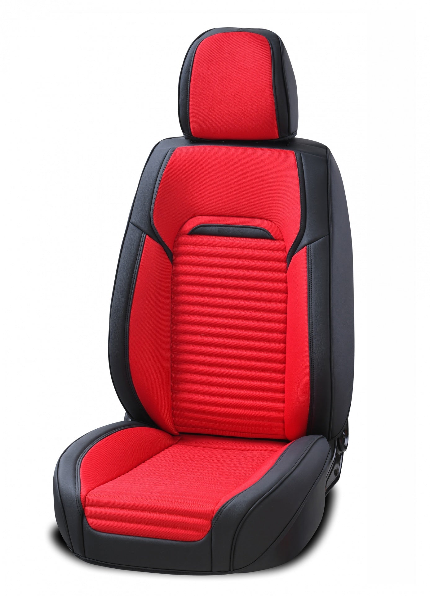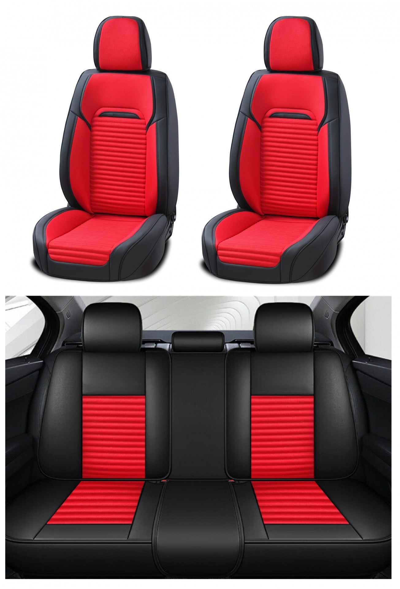 Пълен Комплект Универсална Тапицерия, Калъфи За Автомобилни Седалки Лукс Еко Кожа и Висококачествен Текстил в Черно и Червено