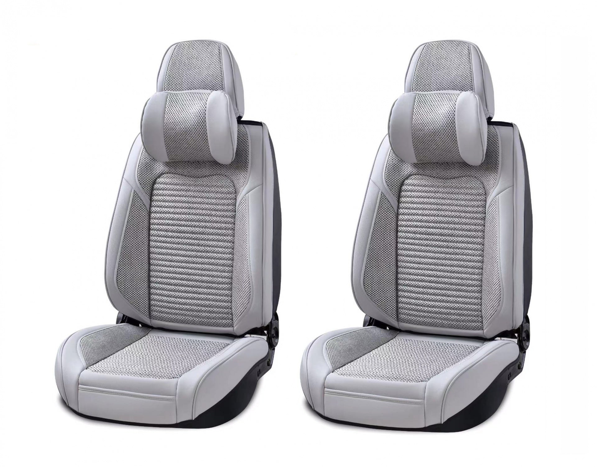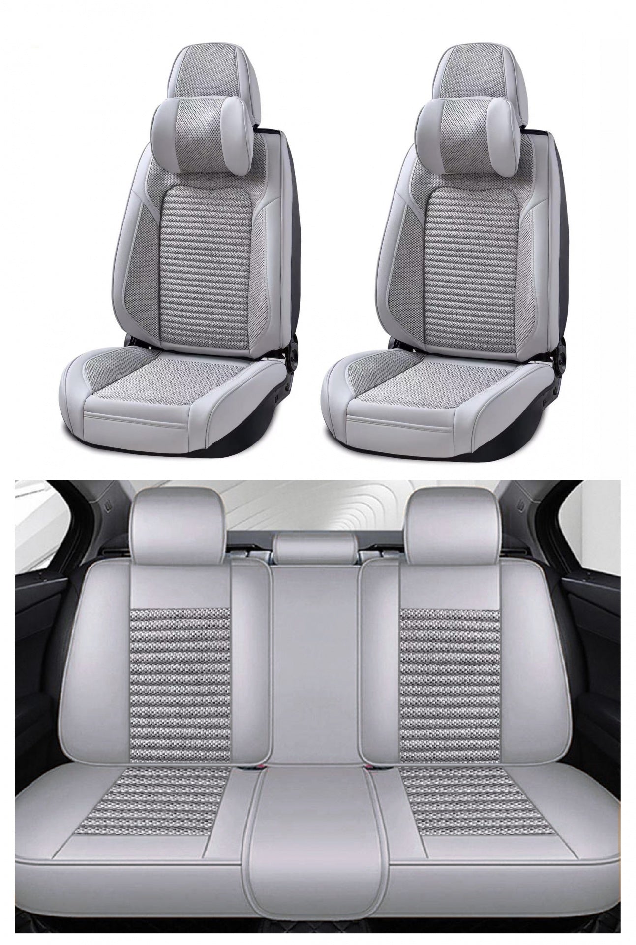 Пълен Комплект Универсална Тапицерия, Калъфи За Автомобилни Седалки Лукс Еко Кожа и Висококачествен Текстил в Светло Сиво с възглавнички