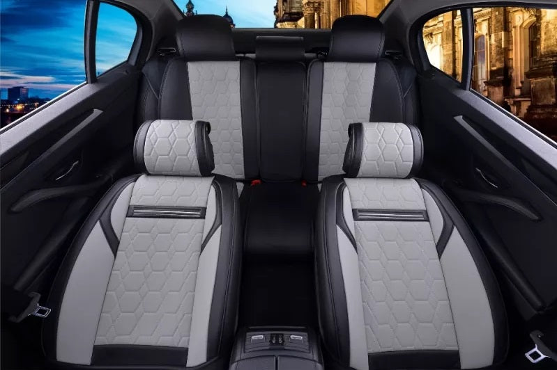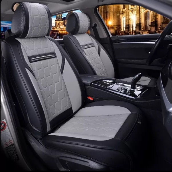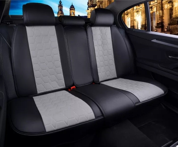 Пълен Комплект Универсална Тапицерия, Калъфи За Автомобилни Седалки Лукс Еко Кожа Сиво и Черно