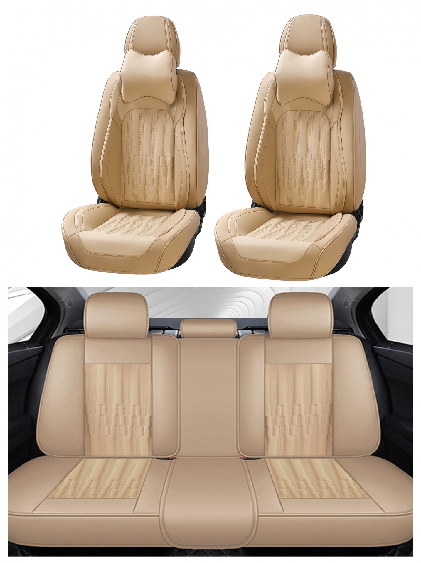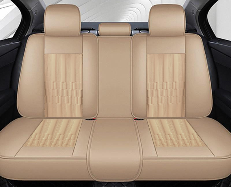 Нова Луксозна тапицерия - пълен комплект Изработени от висококачествена PU изкуствена кожа с мека пяна, осигуряват удобно чувство за сядане. Ръчно шитa. Универсален дизайн, подходящ за всички автомобили. Дизайн, съвместим с airbag - въздушни възглавници. Устойчивост на износване, добър водоустойчив ефект и силна огнезащитна способност. Лесна инсталация. Цялостен дизайн, покрива предната и задната част на седалката. Пакет, включващ: 2 предни и 3 задни калъфа за седалки (възглавничките не са включени в комплекта)