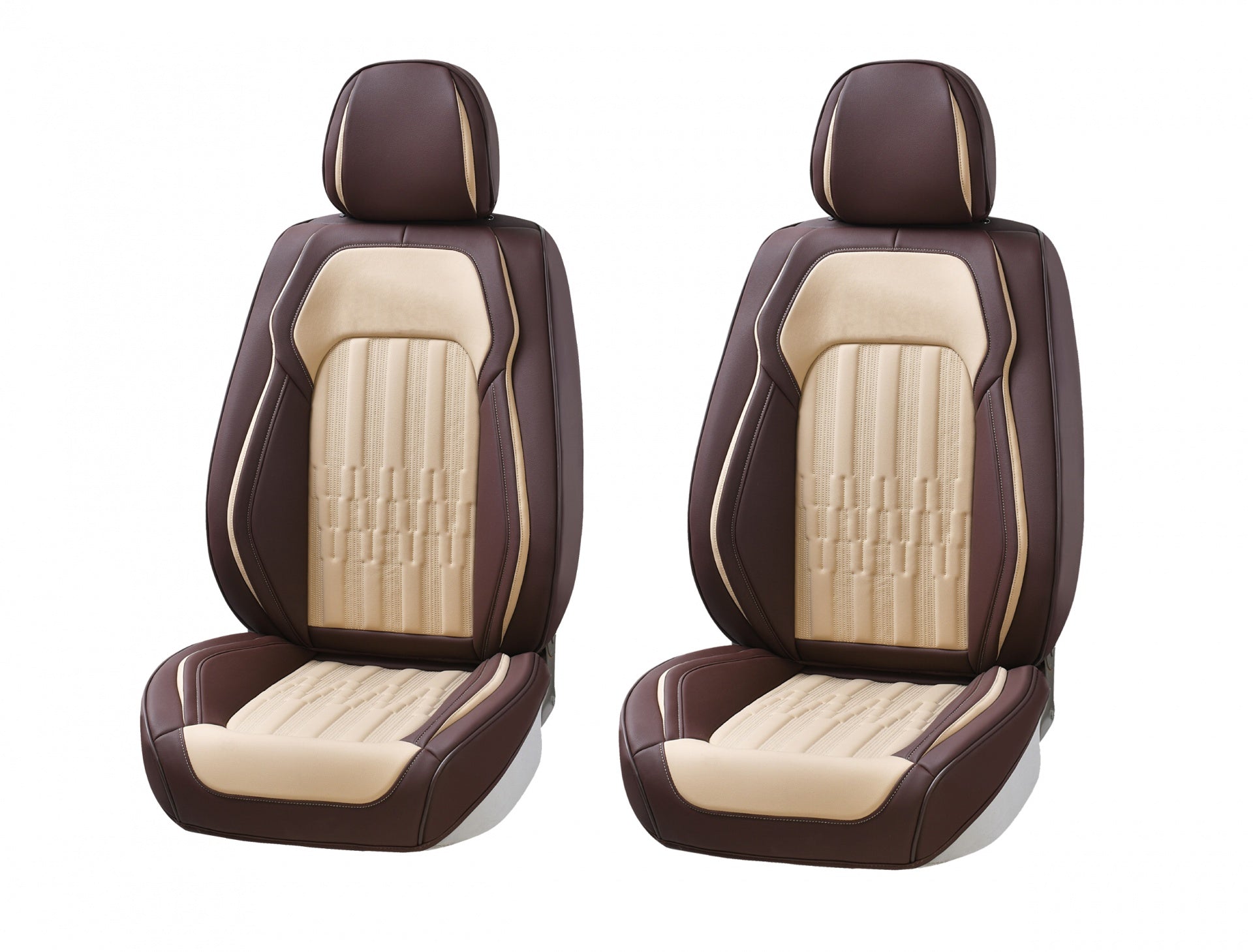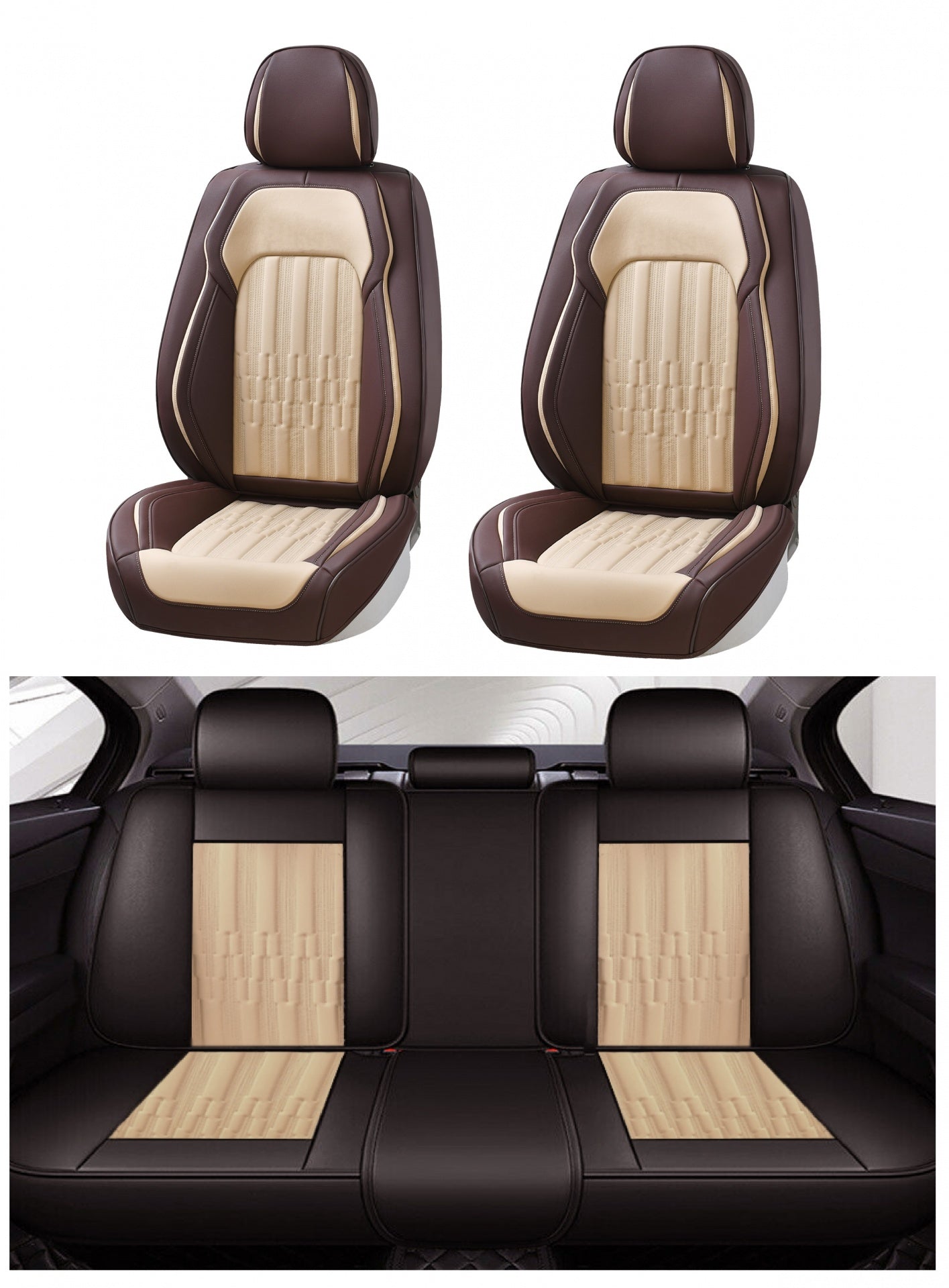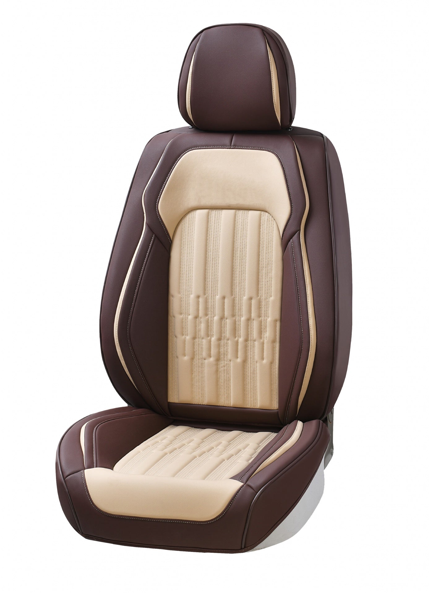 Пълен Комплект Универсална Тапицерия, Калъфи За Автомобилни Седалки Лукс Еко Кожа в Бежово и Кафяво (цвят Кафе)