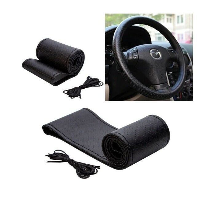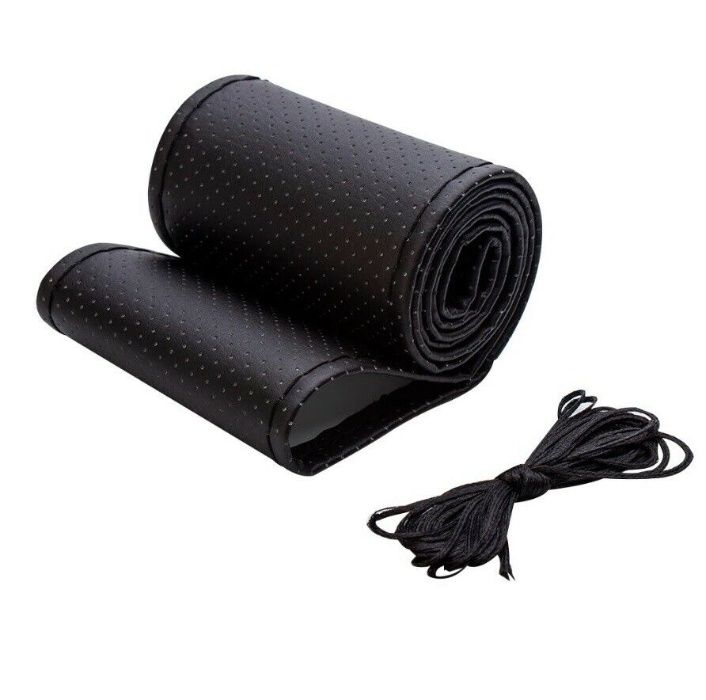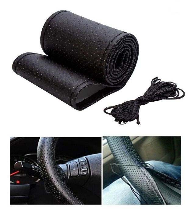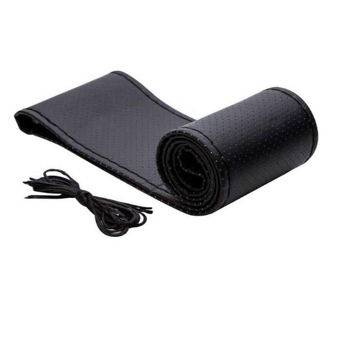 По-чист, по-комфортен, по-мек и по-удобен волан! характеристики: - материал: висококачествена еко кожа, перфорирана - цвят: черен - размер: М - 100х10 см, дължина на лентата 4 м, подходяща за облицоване на волан с вътрешен диаметър 35 см и външен диаметър 37-38 см Продуктът включва: кожена лента за облицоване на волана, игла и конец. Моля измерете външния диаметър на волана си преди поръчка!