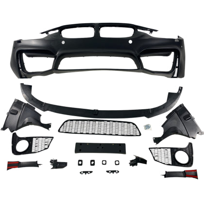 Предна Броня за BMW F30 (2011-2019) - M3 с лип спойлер - с отвори за парктроник, с отвори за халогени