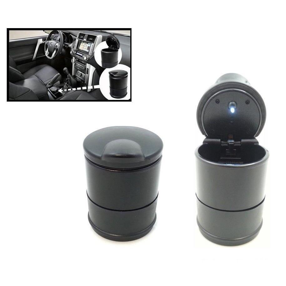 Универсален преносим пепелник със синя LED светлина - подходящ за използване и нощно време. Страхотен дизайн и пасва идеално на поставката ви за чаши. Може да бъде използван и вкъщи, офис, както във всяко превозно средство. Клип капачето предотвратява излизането на дима навън и загасянето на цигарата когато е затворено. Характеристики: - висококачествена твърда черна огенрупорна пластмаса - клип капаче - LED индикатор - височина 85 мм, диаметър 67 мм