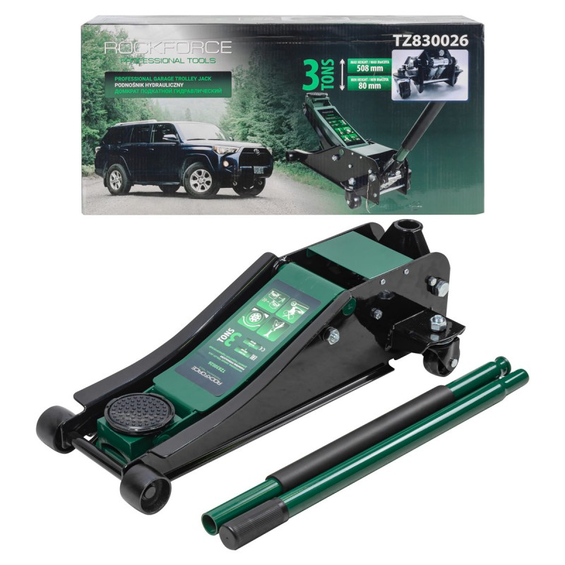 Нископрофилен крик с 2 помпи и усилена конструкция 3 тона 80 - 508 мм Максимално натоварване до 3 тона Минимална височина на крика 80 мм Максимална височина на крика 508 мм Гумена подложка 2 помпи Усилена конструкция