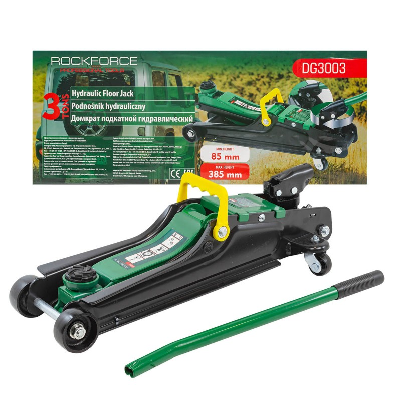Професионален нископрофилен крик тип крокодил 3 тона 85 - 385 mm Максимално натоварване до 3 тона Минимална височина на крика 85 мм Максимална височина на крика 385 мм Усилена конструкция