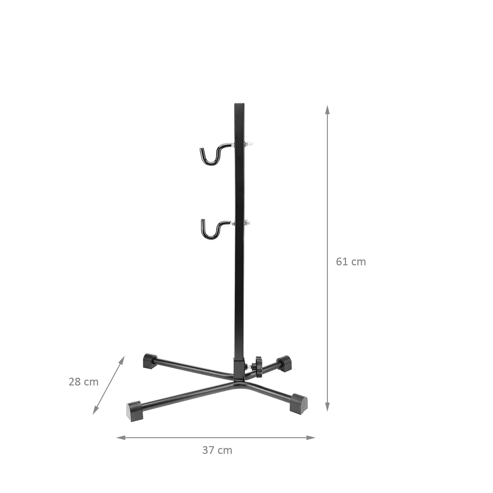 Стабилна и компактна стойка, подходяща за всякакви велосипеди, с регулируеми куки и защита от надраскване идеална за ремонт и съхранение.