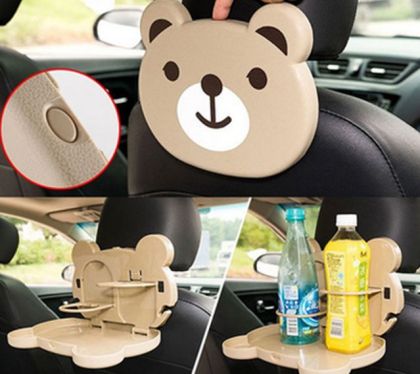 Сгъваема поставка за чаши за облегалка с масичка с форма на мече - бежова