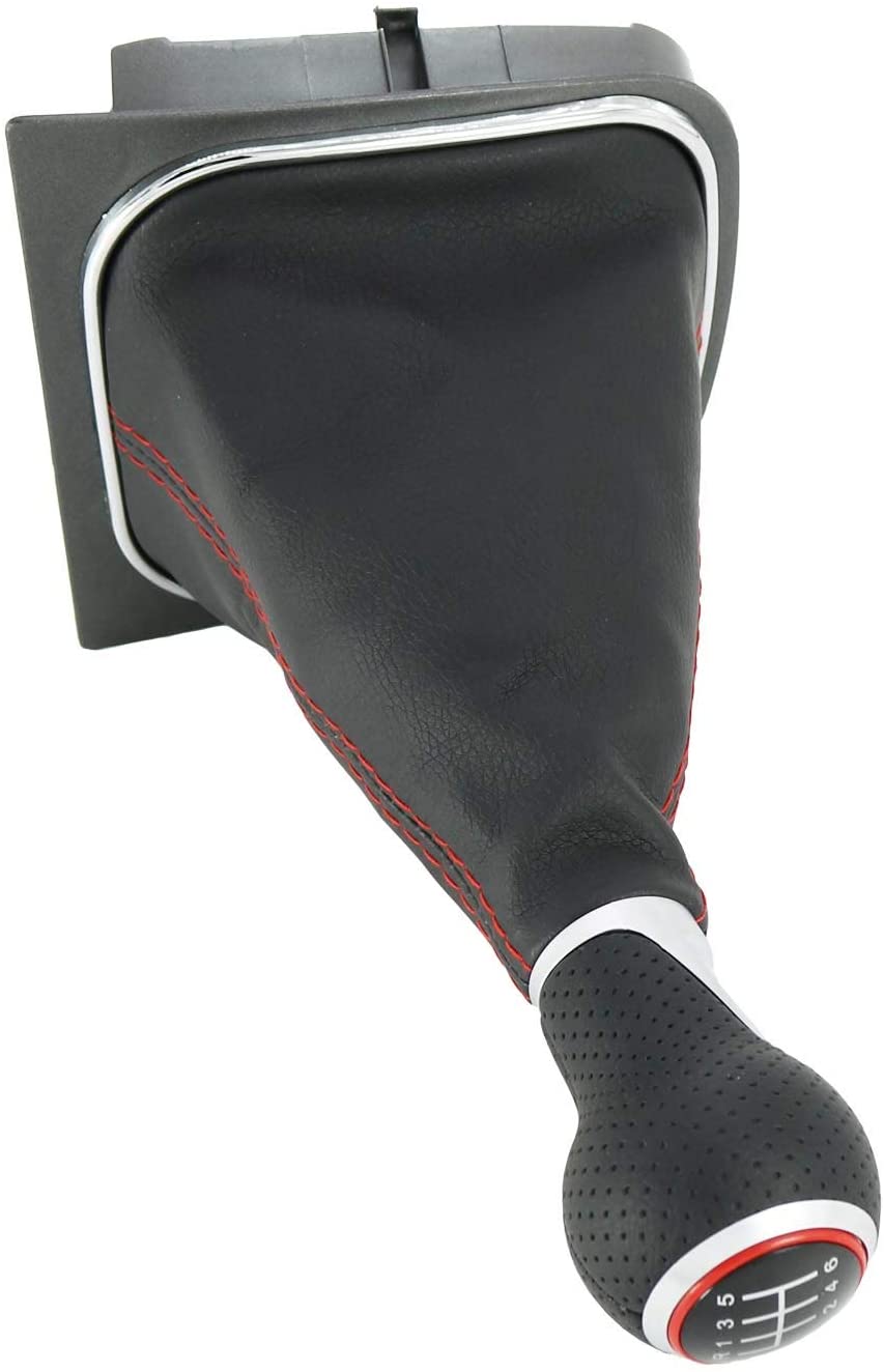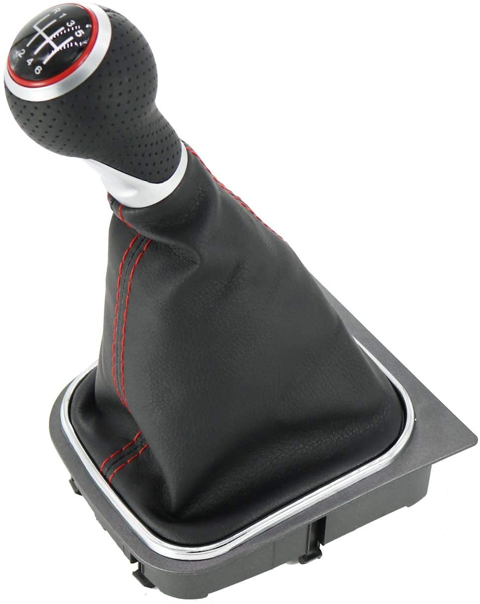 Tопка Скоростен Лост С Маншон, Черна с Червен Кант, Хром, Кожен Кожух, Фолксваген Голф Volkswagen VW Golf 6 A6 MK6 GTI GTD R20 2009 - 2013