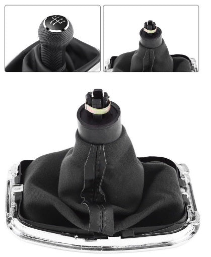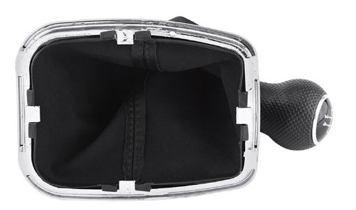 Tопка Скоростен Лост с 5 Скорости И Маншон с Хромирана Рамка За : Golf4/Jetta/Bora 1999-2004 -Чисто Нова. -Изработена от Вискокоачествена Еко Кожа -Лесен монтаж. -Цвят: черен -5 Скорости