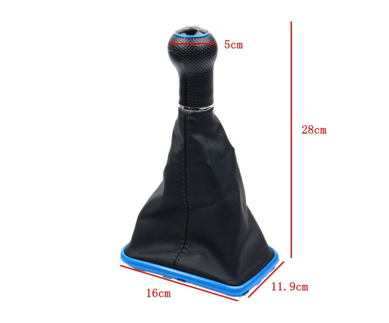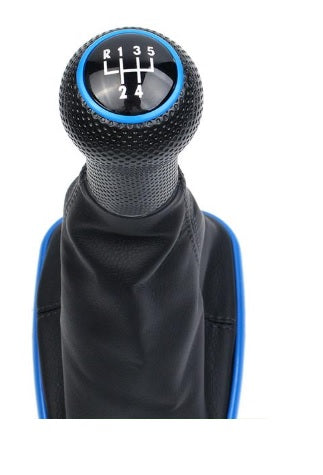 Tопка Скоростен Лост И Маншон Със Синя Рамка За : Golf4/Jetta/Bora 1999-2004 -Чисто Нова. -Изработена от Вискокоачествена Еко Кожа -Лесен монтаж. -Цвят: черно и синьо -5 Скорости