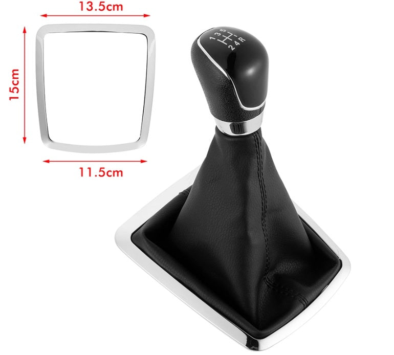 Кожена Tопка Скоростен Лост с Маншон За: Ford Focus MK2 2005-2008 Ford FORD C-max 2010-2012 -Чисто Нова -Изработена от Вискокоачествена Еко Кожа -Лесен монтаж -Цвят: черен -5 скорости Размери на рамката на маншона: Дължина: 15см Ширина в горната част: 13.5см Ширина в долната част: 11.5см