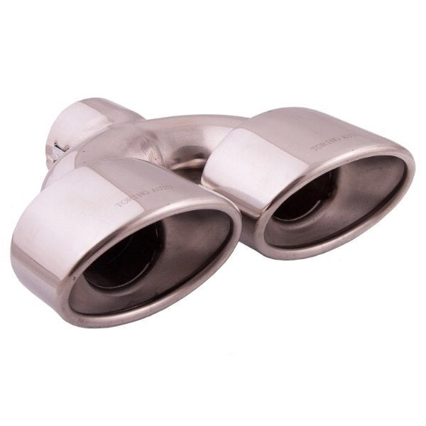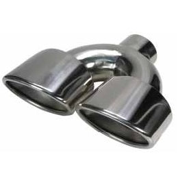 Универсален накрайник за ауспух с висококачествена изработка.. Монтаж чрез заваряване. Предава спортен вид на Вашият автомобил. Материал: Висококачествена неръждаема стомана тип 304 Размери : Оща дължина 190 мм Вход 55мм Щирина на двете тръби в изхода 215 мм Ширина на едната тръба 105 мм
