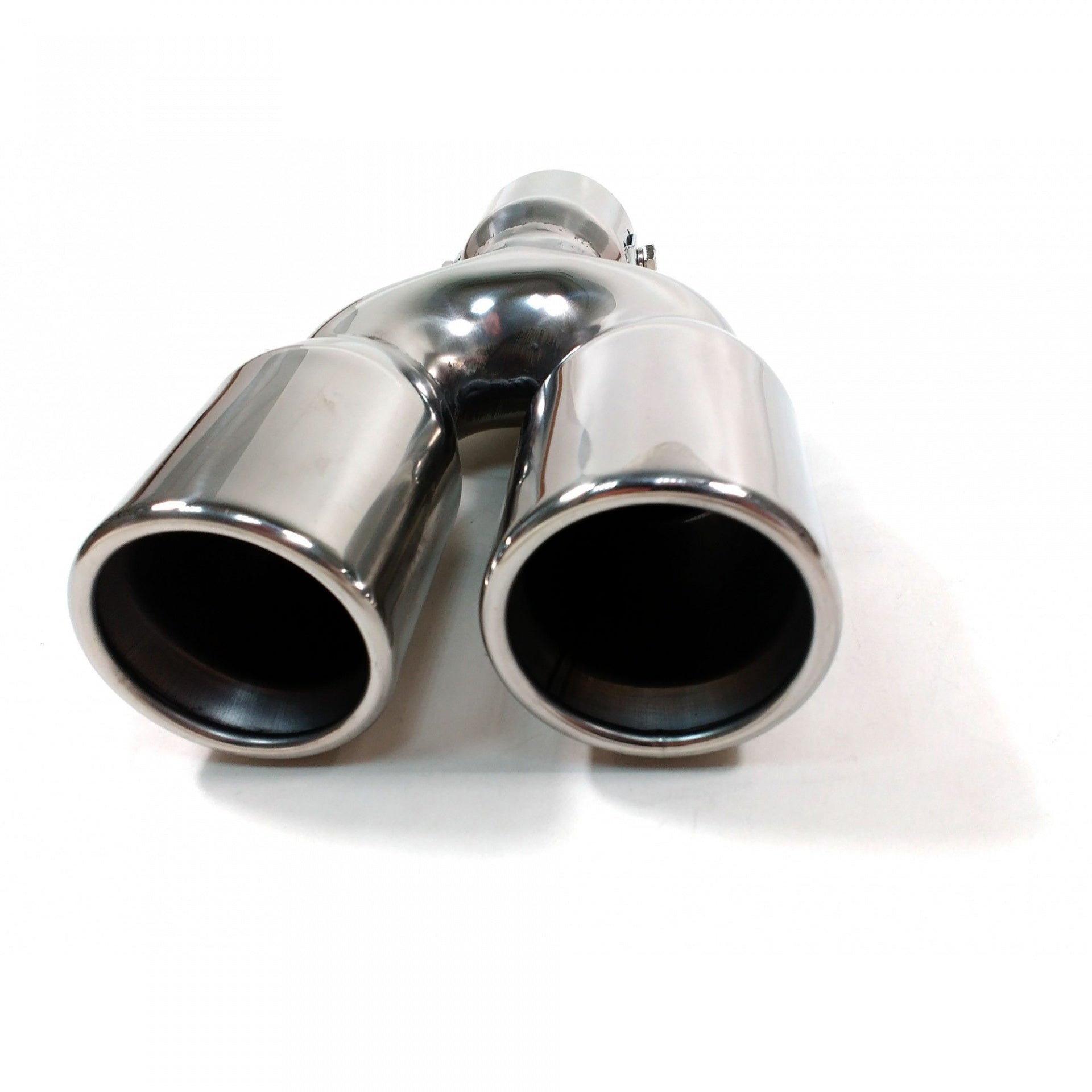 Нов универсален накрайник за ауспух Изработен от висококачествени материали, хромиран Лесен за монтиране (с включени фитинги) Лесен начин да подобрите външният вид на автомобила си Размери: Вход: 5.6 см Изход (двоен): 5.2 см Дължина: 21 см Ширина: 12.4 - 14 см Може да се монтира на ауспух с диаметър: 3.5 см - 5.5 см