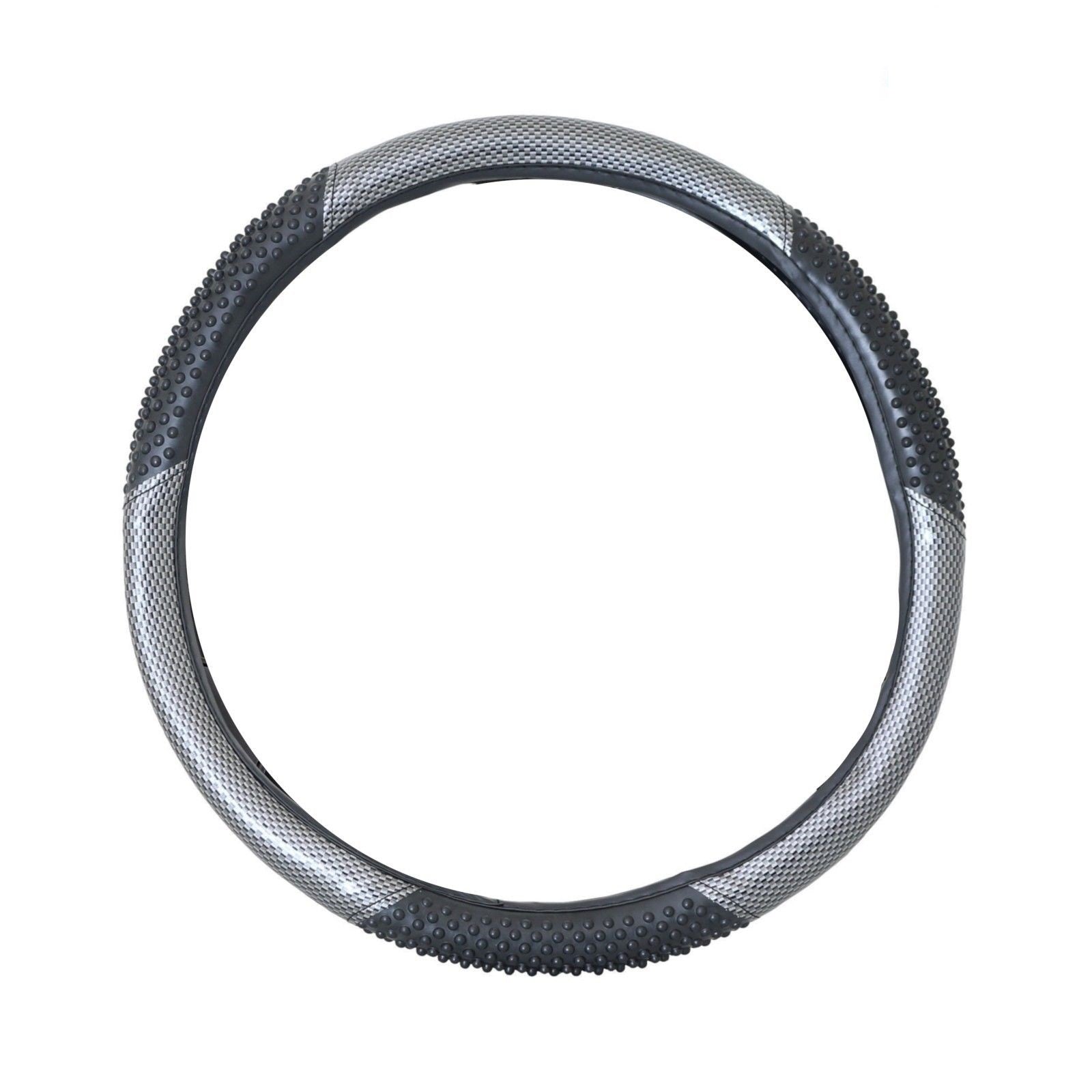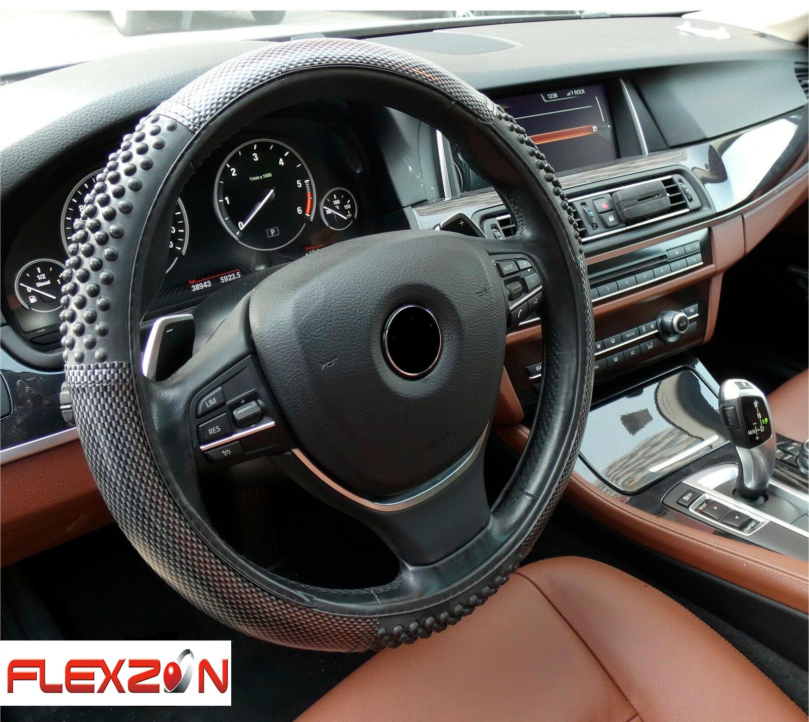 Универсален Ергономичен Калъф За Волан, Релефен, Карбон Ефект, за Автомобил Бус Джип SUV Масажиращо действие, релефни гумени точки Цвят: Карбон / Черен За волани с външен диаметър 37-38см Поставя се с опъване/разтягане по волана. Прилепва плътно по него и не се приплъзва или движи след това.